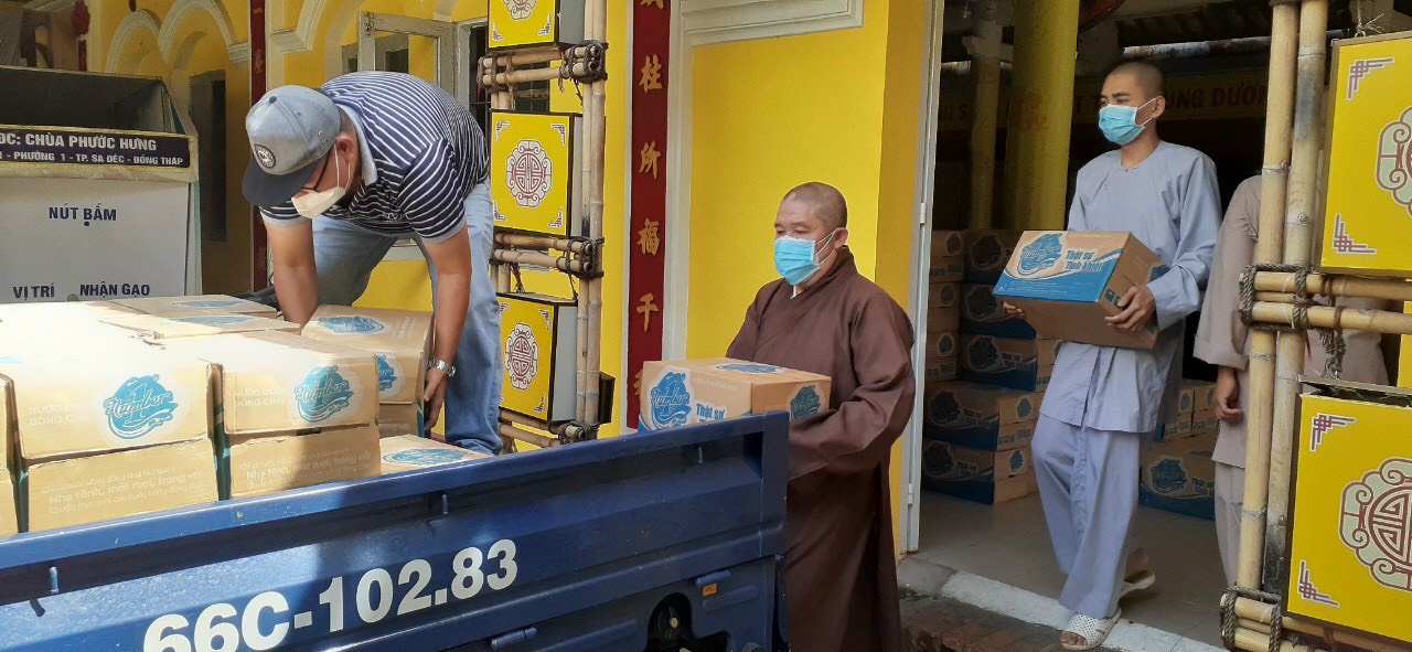 Ni Sư Thích Nữ Lệ Thành, trụ trì chùa Vạn Phước hỗ trợ các nhu yếu phẩm đến các hộ nghèo và gặp khó khăn trong khu cách ly xã Tân Khánh Đông (Tp. Sa Đéc). Sư Cô Thích Nữ Như Hiền, chùa Tây Hưng hỗ trợ các khu cách ly theo chỉ thị số 16 của Chính Phủ tại rạch cầu đốt thuộc Phường An Hòa (Tp. Sa Đéc).