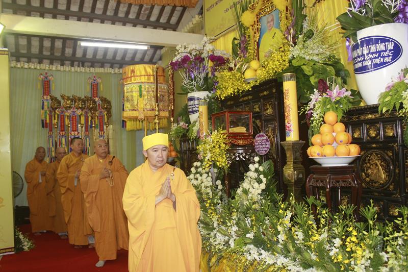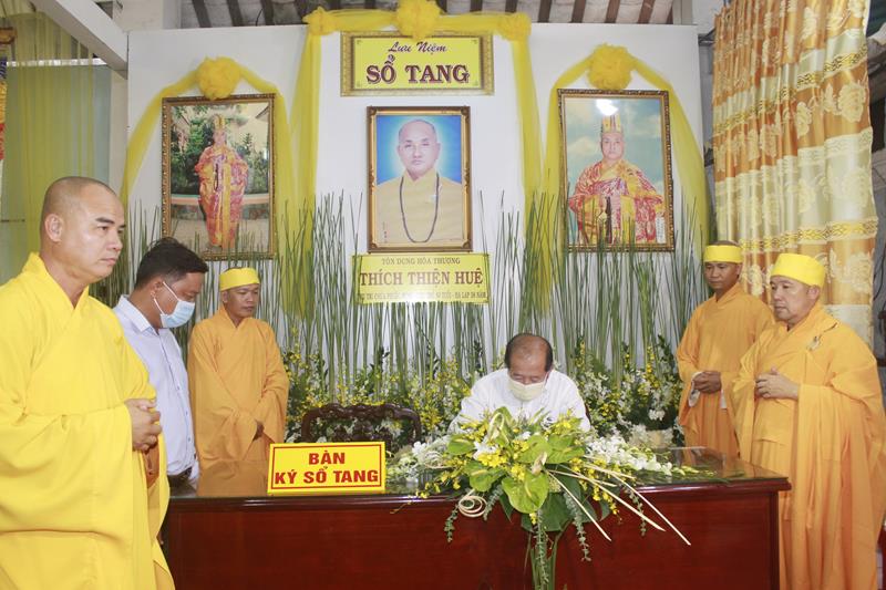 Phái đoàn Tỉnh Ủy, HĐND, Ban Dân Vận tỉnh Đồng Tháp do ông Nguyễn Tôn Hoàng, Phó Bí Thư Thường trực làm trưởng đoàn; Ủy Ban Nhân Dân tỉnh do ông Đoàn Tấn Bửu, Phó chủ tịch làm trưởng đoàn; đoàn Ủy Ban MTTQVN tỉnh do ông Lê Thành Công, Trưởng Ban dân vận – Chủ tịch UB. MTTQVN tỉnh; Thành ủy, HĐND, UB MTTQVN Thành phố Sa Đéc… làm trưởng đoàn cùng các vị cùng đoàn đến Giác linh đường dâng hương kính viếng, dâng hương, ghi vào sổ tang trong Tang lễ cố Đại lão Hòa thượng Thích Thiện Huệ.