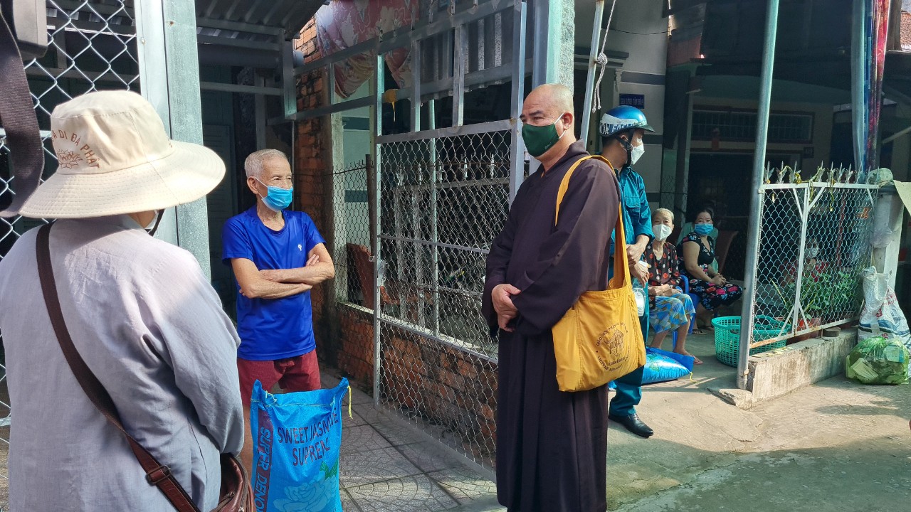 Trước tình hình dịch bệnh Covid -19 bùng phát vẫn còn phức tạp, số ca F0 lây nhiễm trong cộng đồng gia tăng, một số xã/ thị trấn mức độ nguy cơ cao cấp độ 4. Với tinh thần tương thân tương ái, hỗ trợ nhân dân cùng nhau phòng chống dịch Covid -19, hỗ trợ chia sẻ khó khăn đến bà con nhân dân trong khu vực phong tỏa cách ly do ảnh hưởng đại dịch Covid -19, Thượng Tọa Thích Tĩnh Triệt, Phó Ban Thường trực BTS GHPGVN tỉnh, Trưởng Ban trị sự GHPGVN huyện Châu Thành cùng Tăng Ni Ban trị sự Phật giáo