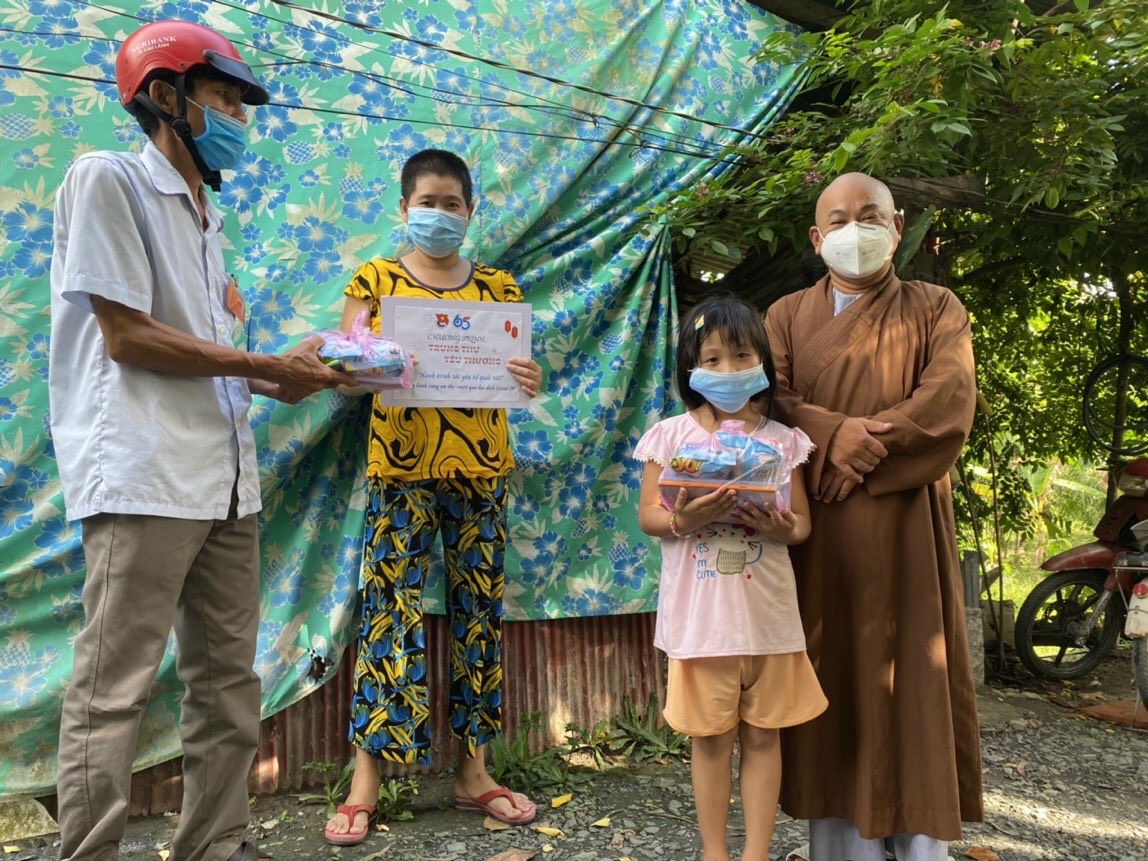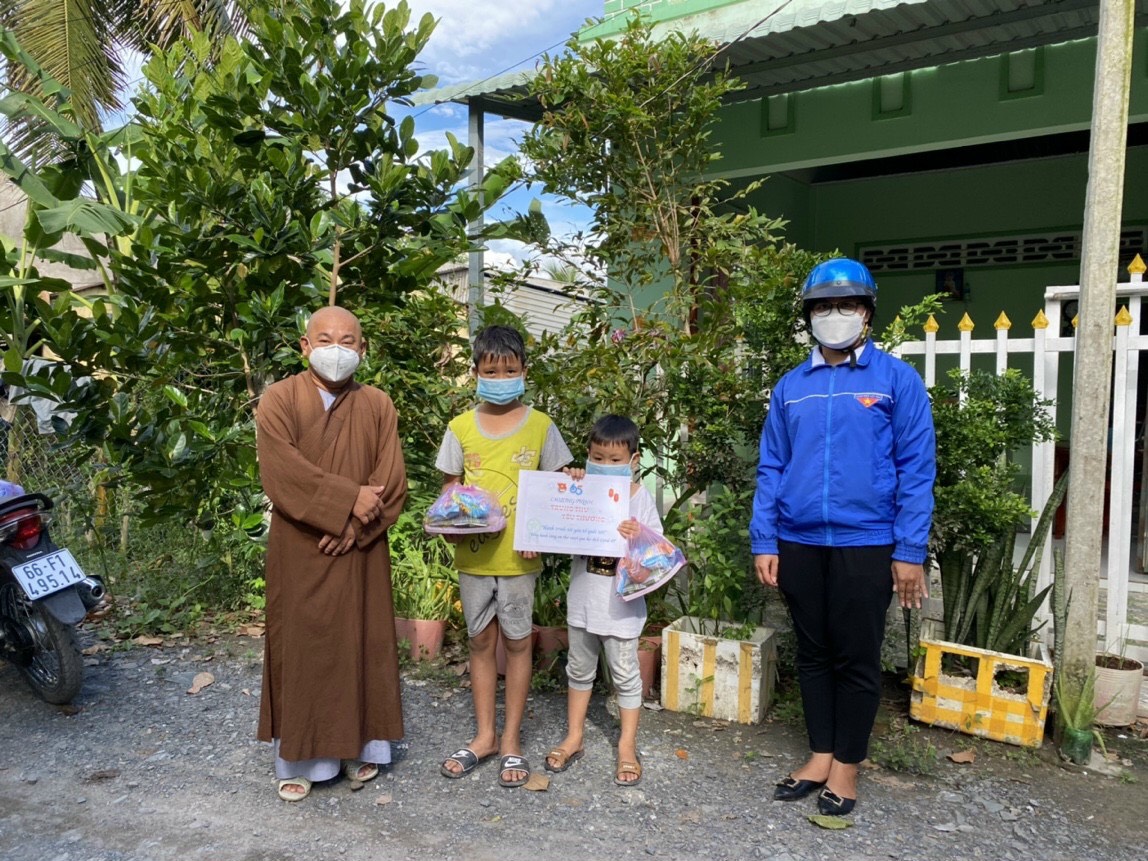 Chư tôn đức tặng quà Tết trung thu đến các em thiếu nhi, thực hiện được chương trình được trong thời điểm nay với sự hỗ trợ của các Anh, chị thuộc Huyện đoàn, Xã đoàn đã tích cực trao quà trung thu đến các cháu thiếu nhi trong thời gian giãn cách xã hội trên địa bàn toàn tỉnh đất Sen Hồng.