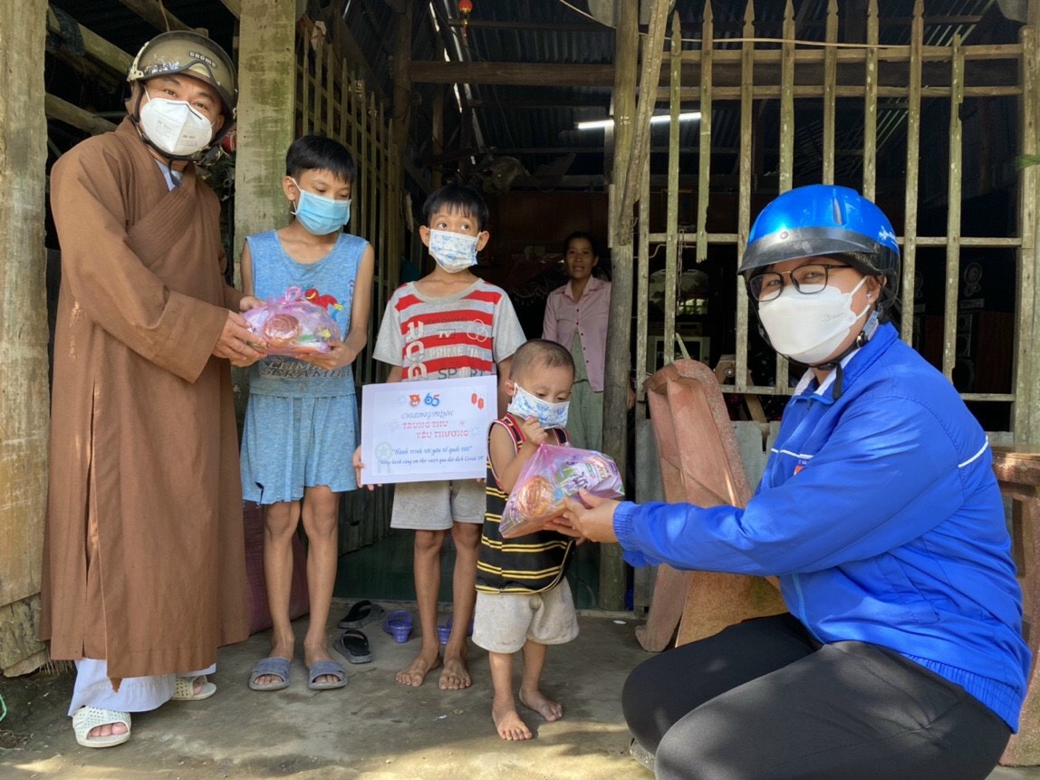 Chư tôn đức tặng quà Tết trung thu đến các em thiếu nhi, thực hiện được chương trình được trong thời điểm nay với sự hỗ trợ của các Anh, chị thuộc Huyện đoàn, Xã đoàn đã tích cực trao quà trung thu đến các cháu thiếu nhi trong thời gian giãn cách xã hội trên địa bàn toàn tỉnh đất Sen Hồng.