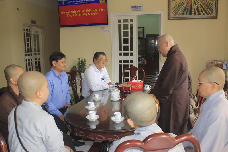 Thay mặt lãnh đạo Thành phố, ông Phạm Văn Chuẩn – Tỉnh ủy viên, Bí thư Thành ủy Sa Đéc và đại diện các cơ quan ban ngành thành phố Sa Đéc, đã thông tin đến đoàn những kết quả của Thành phố Sa Đéc đạt được trong năm 2020 và ghi nhận, đánh giá cao những đóng góp của các tăng ni, phật tử trên địa bàn huyện vào quá trình phát triển kinh tế – xã hội tại địa phương. Riêng đơn vị Thành phố Sa Đéc, sẽ hỗ trợ về các mặt thuộc chánh quyền quản lý tạo điều kiện thuận lợi cho việc tổ chức Đại hội Đại biểu GHPGVN cấp huyện nhiệm kỳ 2021 – 2026.