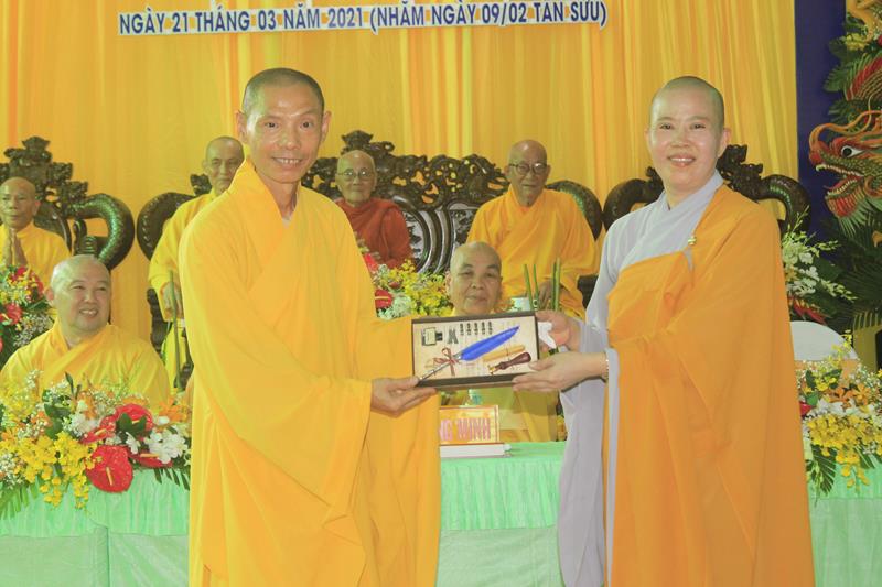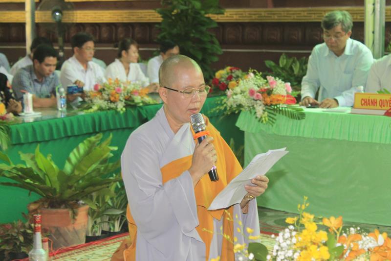 Cung kính đón nhận Quyết định từ Hòa thượng Trưởng ban, Ni Sư tân trú trì thành kính đảnh lễ dâng lời cảm niệm Chư tôn đức, cha mẹ, thầy tổ dưỡng nuôi giới thân huệ mạng. Ni sư phát nguyện đảm nhận trọng trách mà giáo hội đã tin tưởng giao phó, nguyện tinh tấn để hoàn thành trọng trách trú pháp vương gia, trì Như lai tạng, truyền trì mạng mạch Phật pháp, nguyện báo đáp tứ trọng ân và thực hiện đúng tinh thần Hiến chương của GHPGVN, luật pháp của nhà nước. Ni Sư tân trụ trì đã bày tỏ lòng biết ơn đến các cấp chính quyền, bà con Phật tử nhân dân đã tạo mọi điều kiện giúp đỡ trong thời gian qua.