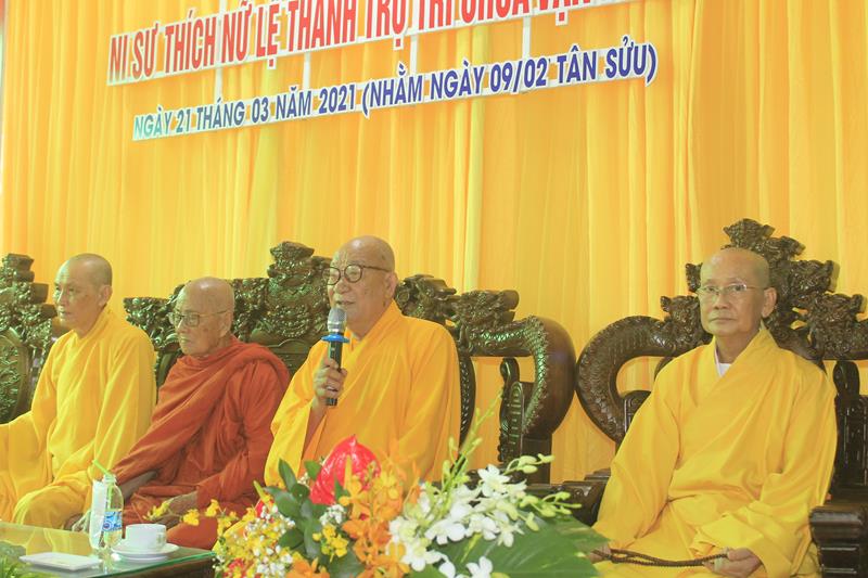 Thay mặt Chư tôn đức chứng minh, Hoà thượng Thích Nhật Quang đã có đạo từ tại buổi lễ. Đạo từ của Hòa thượng đã nói lên tinh thần nhập thế của Phật giáo xuyên suốt quá trình du nhập vào đất nước. Hòa thượng đã nhấn mạnh vai trò của ngôi chùa và vị thầy trụ trì trong đời sống xã hội hiện nay, đồng thời chúc mừng Phật tử nhân dân và bổn tự Vạn Phước giờ này đã đủ ba ngôi báu Phật, Pháp, Tăng, chính vì vậy nhân dân phật tử cùng chính quyền địa phương hãy cùng với Ni Sư trụ trì gìn giữ, bảo vệ và phát triển ngôi chùa, lấy đó làm nơi tu tập, triển khai công cuộc hoằng pháp độ sinh đem chánh pháp của Đức Phật truyền bá rộng rãi đến mọi nơi để khắp nơi đều được sống trong tinh thần của Đạo pháp.