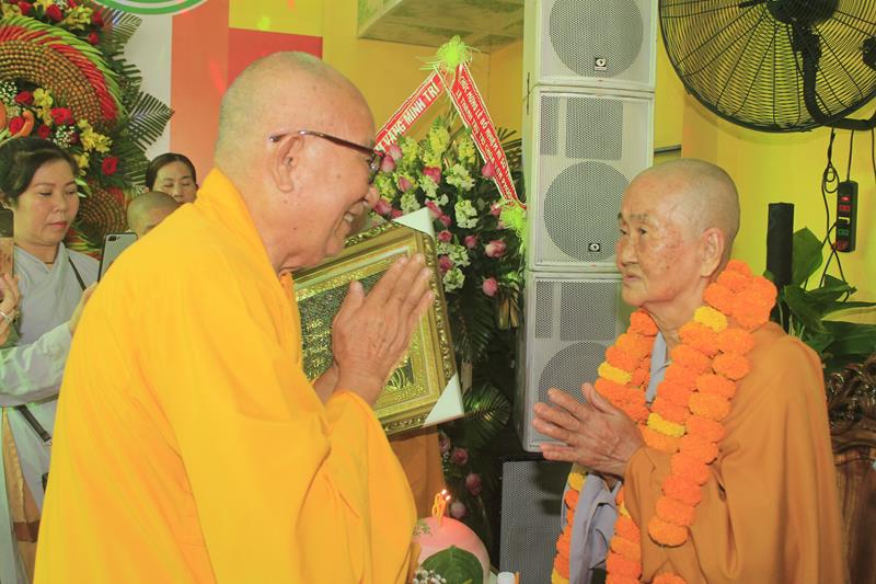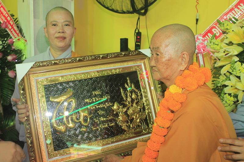 Nhân dịp này, Ni Sư tân trụ trì chúc thọ đến thân mẫu nhân dịp lễ bổ nhiệm.