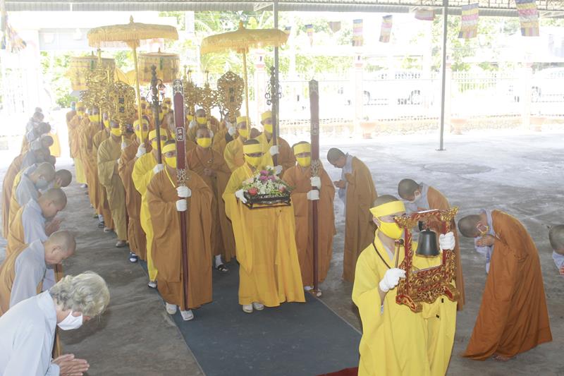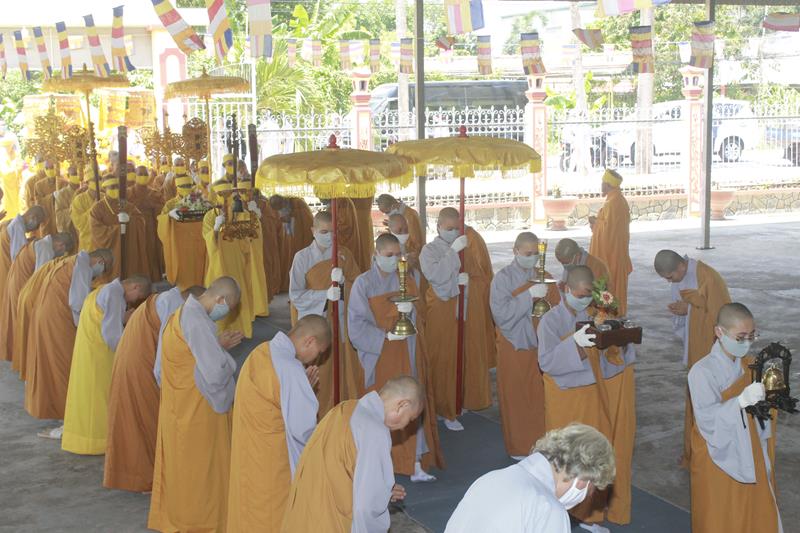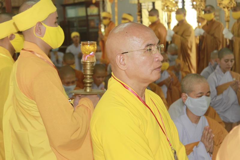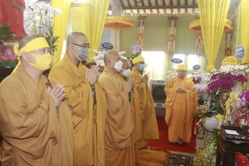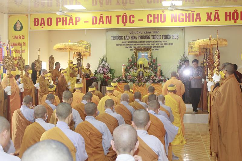 Theo đó, Ban giám hiệu, Ban giảng huấn, Tăng Ni sinh đảnh lễ giác linh Cố hòa thượng thượng Thiện hạ Huệ –  nguyên Hiệu trưởng Trường Trung cấp Phật học tỉnh Đồng Tháp,