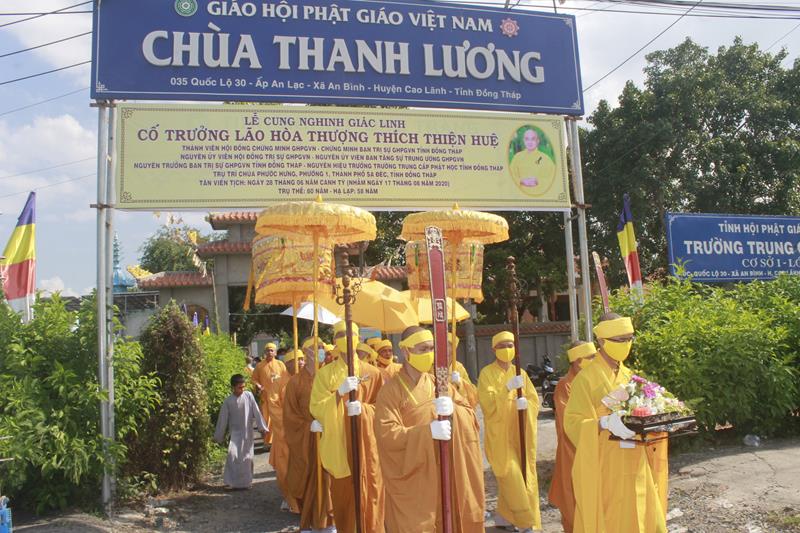 Ban tổ chức, Ban Nghi lễ, Ban Kinh sư PG tỉnh Đồng Tháp.đã cung thỉnh Giác linh hướng đến  chùa Thanh Lương (Huyện Cao Lãnh), chùa Phước Huệ (Tp. Sa Đéc) .