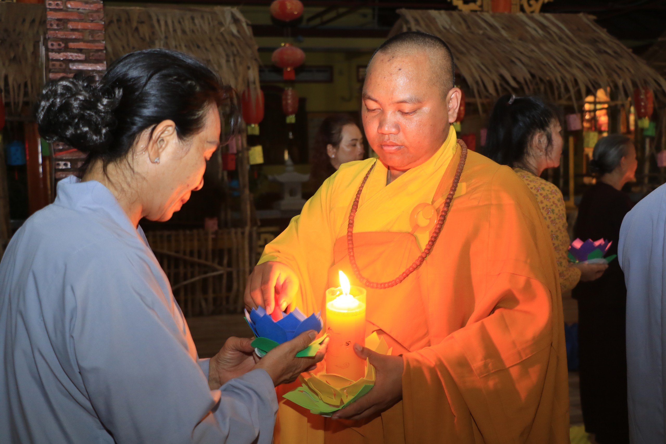 Sau khi lời tuyên bố lý do đêm hội hoa đăng với sự đều phối chương trình của Sư cô Thích nữ Như Ánh – Ủy viên Phân ban Công nghệ Truyền thông Ban Văn hóa Trung ương, Ủy viên Ban Văn hóa GHPGVN tỉnh Đồng Tháp, Đại đức trụ trì đã niêm hương bạch Phật và cử hành nghi thức truyền đăng, để tưởng nhớ về hình ảnh cách đây 25 thế kỷ: