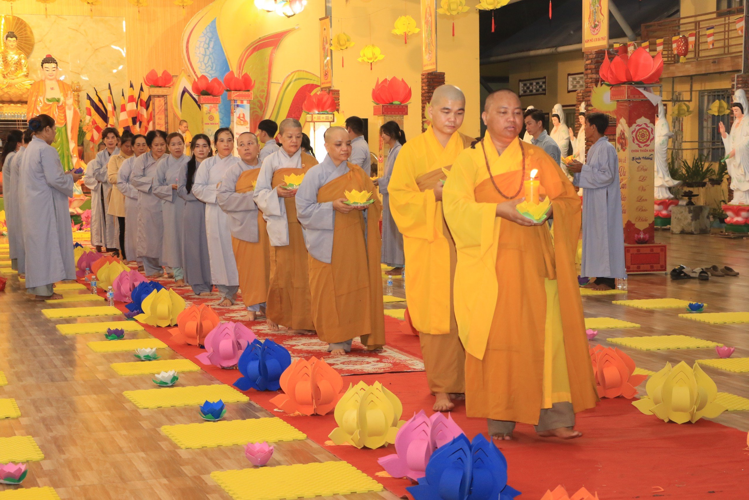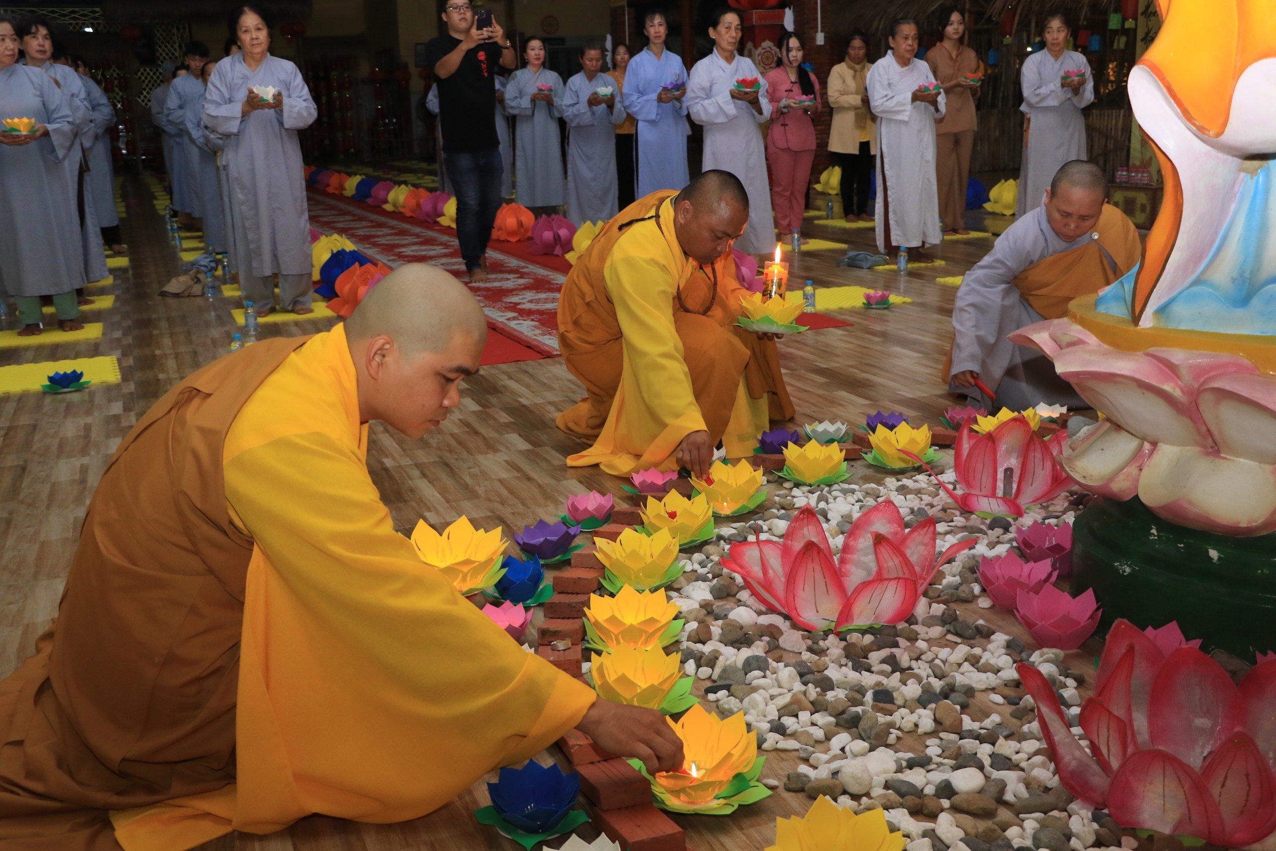 Sau khi lời tuyên bố lý do đêm hội hoa đăng với sự đều phối chương trình của Sư cô Thích nữ Như Ánh – Ủy viên Phân ban Công nghệ Truyền thông Ban Văn hóa Trung ương, Ủy viên Ban Văn hóa GHPGVN tỉnh Đồng Tháp, Đại đức trụ trì đã niêm hương bạch Phật và cử hành nghi thức truyền đăng, để tưởng nhớ về hình ảnh cách đây 25 thế kỷ: