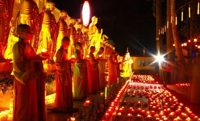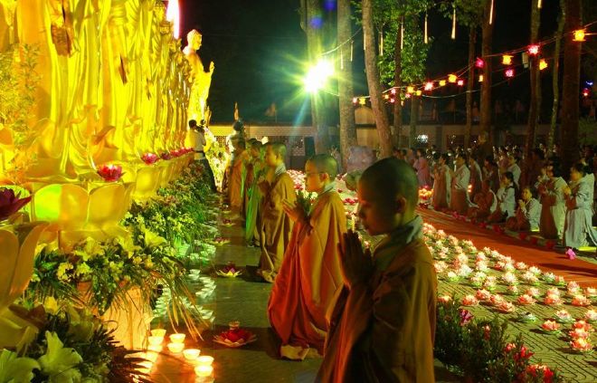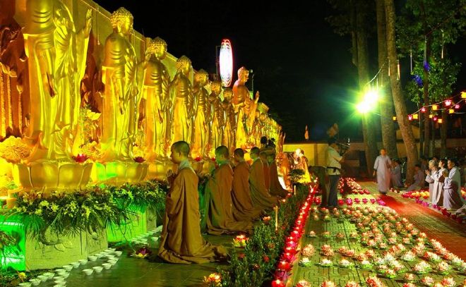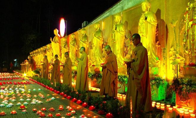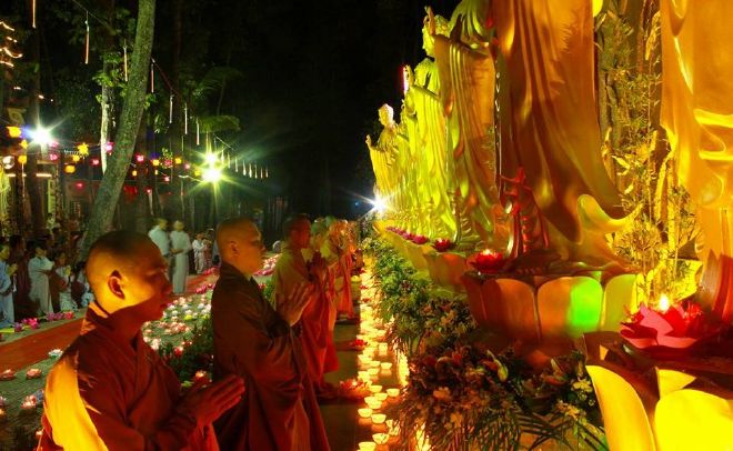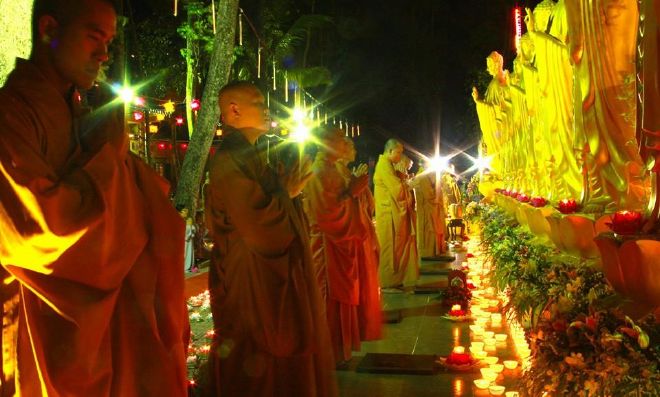 Trong đêm dài thanh vắng, tiếng niệm Phật trầm bổng ngân vang, từng bước chân thiền hành thanh thoát, ta còn tìm đâu cõi Lạc bang xa tít tận chân trời. Ai tham dự đêm hội hoa đăng này mới cảm nhận được sự mầu nhiệm, thiêng liêng của những tấc lòng dâng tặng.