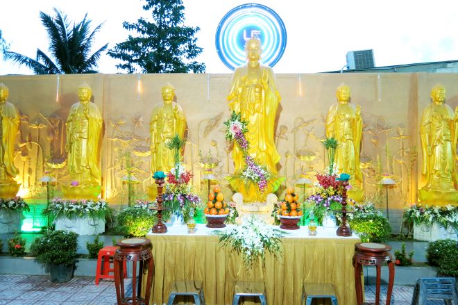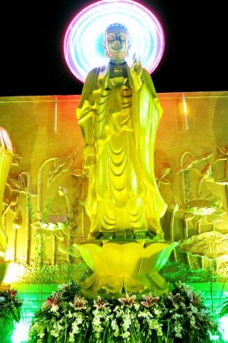 Đêm nay, dưới tôn dung từ ái của 19 tôn tượng đức Phật Di Đà tại chùa Hoa Lâm, hàng ngàn Phật tử đã quy tụ về đây với niềm hân hoan khát ngưỡng, chiêm bái, tưởng niệm về Ngài bằng tất cả tấm lòng tôn vinh và khát ngưỡng. Bởi lẻ hạnh nguyện của Ngài là mang bình an, lòng hướng thiện, chỗ quay về nương tựa của tất cả chúng sanh. Kỷ niệm đến ngày khánh đản của Ngài chính là tỏ lòng tri ân, đồng nhắc nhỡ tất cả chúng ta thêm chuyên cần tinh tấn trên con đường niệm Phật cầu vãng sanh Tây phương cực lạc.