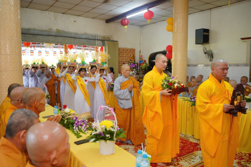 Trước khi vào Đại lễ, đạo tràng thành kính cung thỉnh chư Tôn thiền đức quang lâm Phật điện niêm hương bạch Phật, cầu nguyện quốc thới dân an, Phật pháp trường tồn.