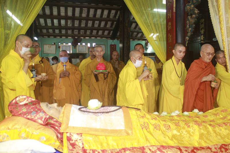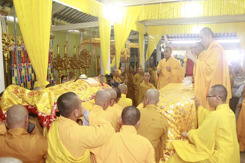 Sau khi nhục thân cố Đại lão Hòa thượng được nhập kim quan, môn đồ pháp quyến đã làm lễ thọ tang, cảm niệm ân giáo dưỡng của vị tôn sư khả kính, người dành cả cuộc đời phụng sự cho Đạo pháp, Dân tộc.