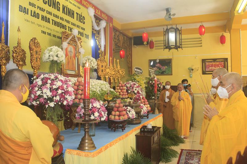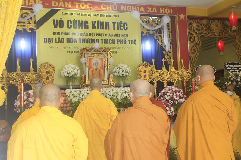 Ban nghi lễ Phật giáo tỉnh Đồng Tháp, thực hiện nghi thức thiền môn và Chư tôn đức Phật giáo Việt Nam tỉnh Đồng Tháp đảnh lễ di ảnh, Đức Hòa Thượng thượng Phổ hạ Tuệ Pháp Chủ GHPGVN, trong tiếng chuông trống bát nhã thiêng liêng ngày đưa tiễn giác linh Ngài về cõi Phật.
