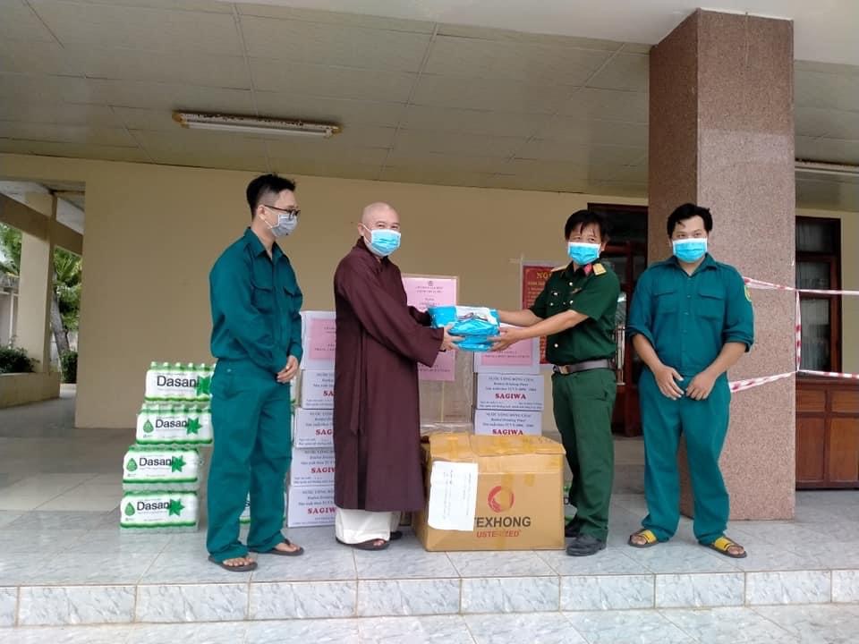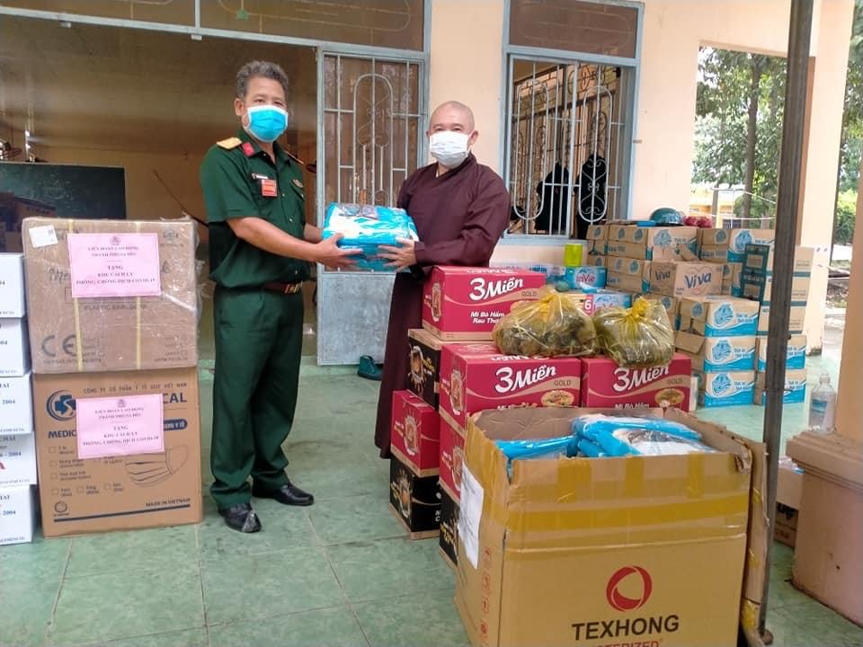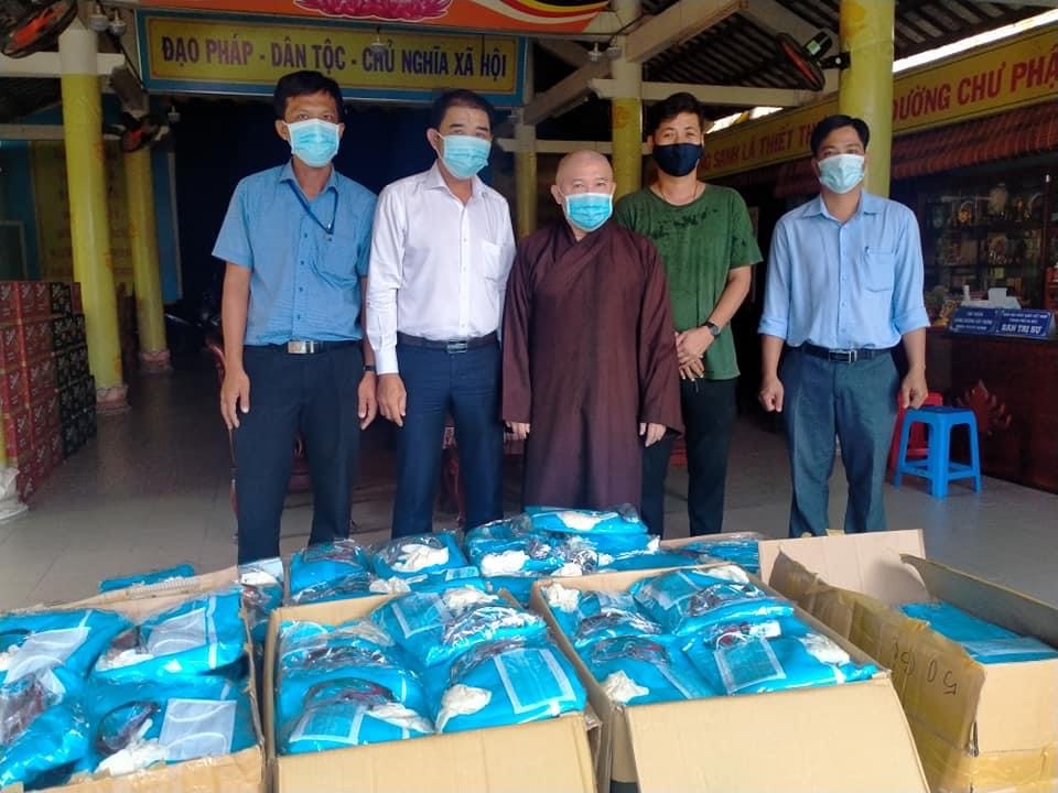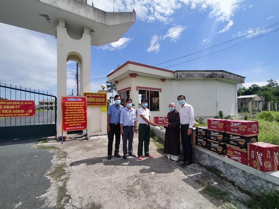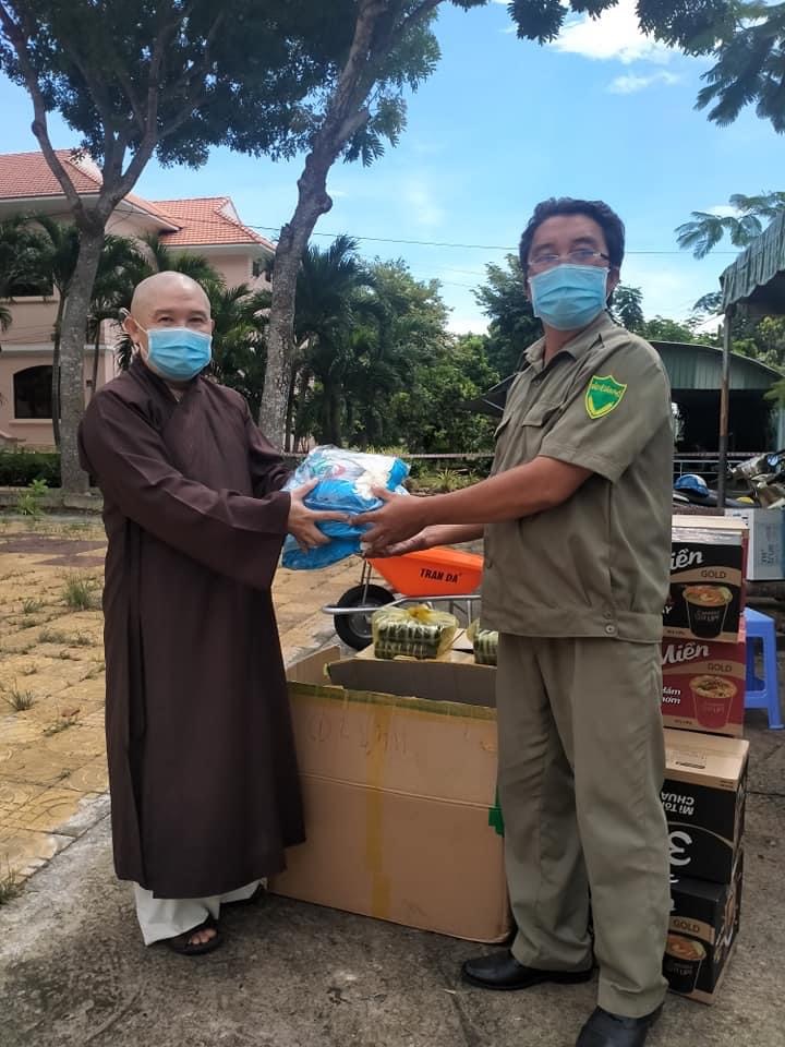 Thượng tọa, cùng lãnh đao Liên đoàn lao động, thành đoàn thành phố Sa Đéc đã trao những phần quà đến người quản lý các khu cách lý. Chia sẽ phần nào cho người dân trong khu vực cách ly, tiếp sức cho bà con cùng nhau vượt qua đại dịch.