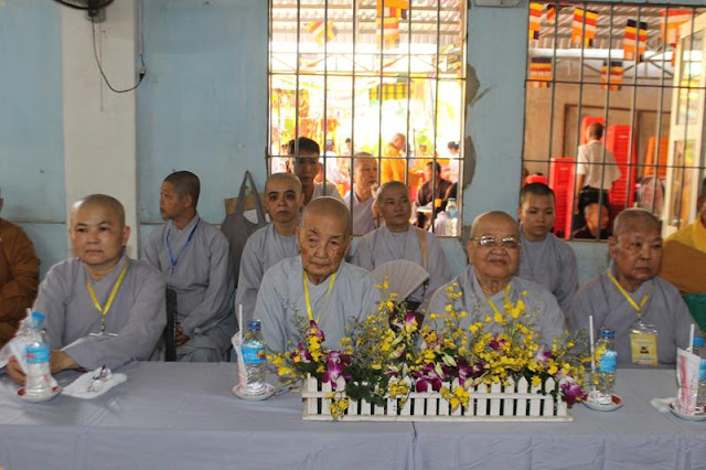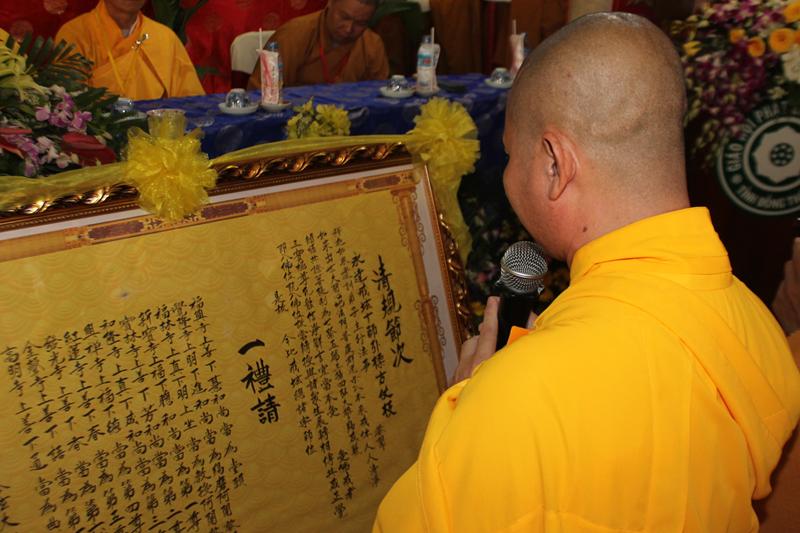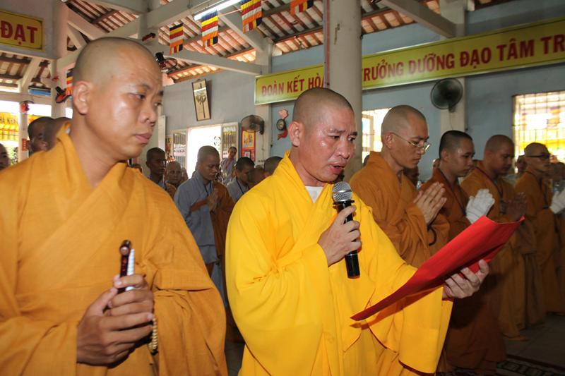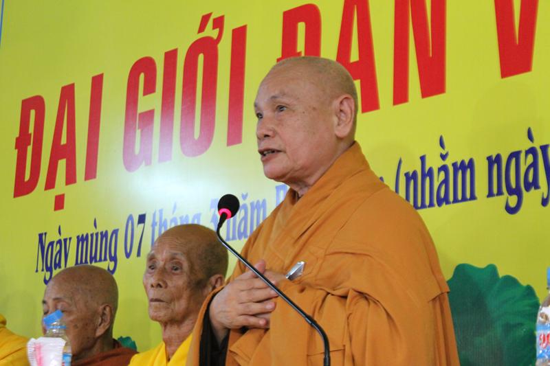 Tiếp theo, Đại đức Thích Chơn Tâm – Chánh Thư ký Ban Trị Sự báo cáo công tác tổ chức. BTC cung thỉnh HT. Thích Thiện Huệ – Trưởng Ban Trị sự GHPGVN tỉnh đương vi Hòa thượng Đàn đầu của giới đàn Tăng; cung thỉnh Ni Trưởng Thích nữ Như Ngọc – Viện chủ chùa Phước Huệ, đương vi Hòa thượng Đàn đầu của đàn Ni; cung thỉnh Hòa Thượng Thích Minh Thông – đương vi Tuyên luật sư khai đạo cho giới tử.