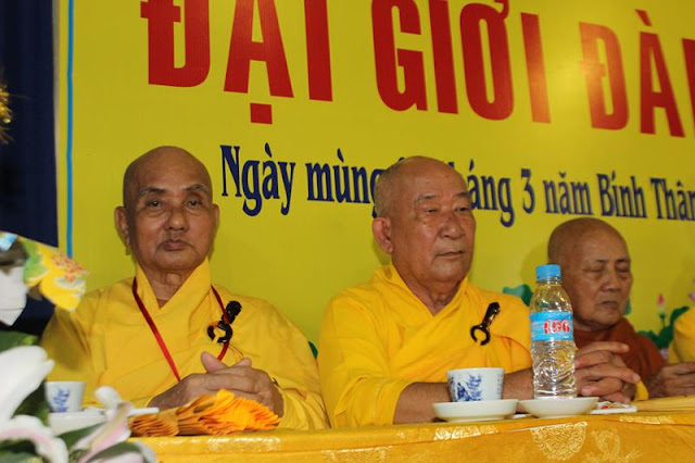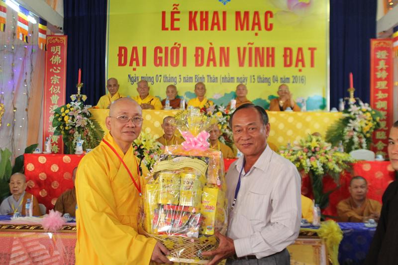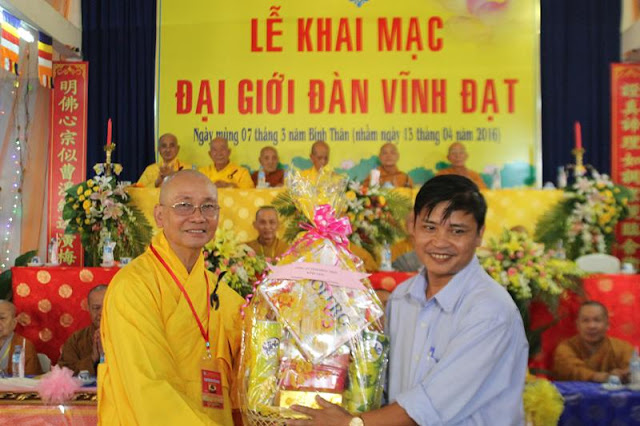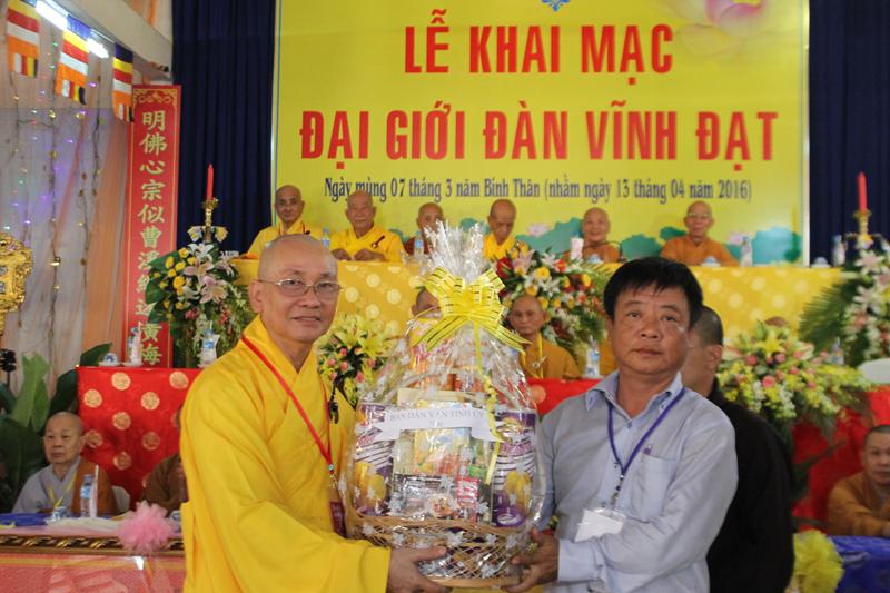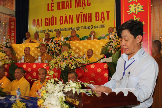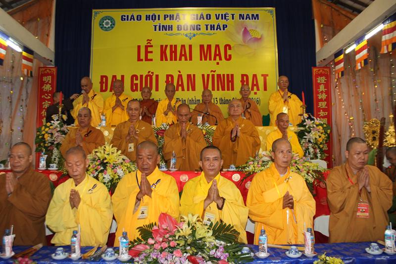 HT.Thích Thiện Huệ -Trưởng BTS GHPGVN tỉnh, Chánh chủ đàn tuyên đọc diễn từ của BTS. Theo đó, Hoà thượng cho biết: Đại giới đàn Vĩnh Đạt được tổ chức dưới sự cho phép của Trung ương Giáo hội và đồng thuận của chính quyền tỉnh Đồng Tháp: “Cung kính phụng tuân lời dạy của Đức Phật, lấy Ba La Đề Mộc Xoa làm kim chỉ nam, luật do Phật chế, giới do sư truyền, sứ mạng truyền thừa đạo Phật là do Tăng ni truyền thừa kế nghiệp để truyền đăng tục diệm, nối dòng Phật tổ….