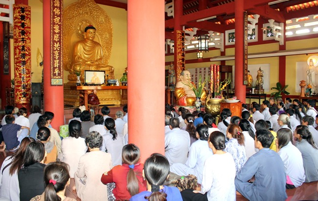 Thượng tọa nhắc nhở mọi người cố gắng trau dồi đạo đức, trau dồi cái vô hình, cái mà không ai thấy. Tuy nhiên cái trau dồi này mà quên một ngày là nó lui sụt liền, nhịn ăn một ngày được nhưng đừng bỏ tu ngày nào, bỏ ăn một ngày ta vẫn có thể không sao, nhưng nếu trong một giây phút nào đó ta quên đi cái vô ngã, quên đi lòng từ bi, quên tu tập kính Phật trọng Tăng là mình đã tụt dốc liền.