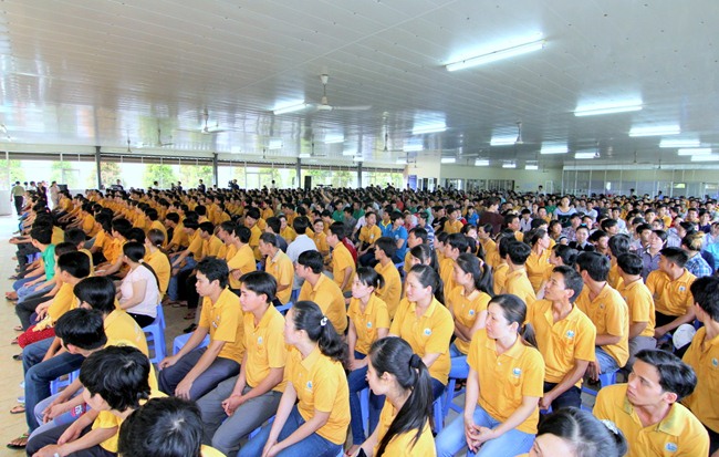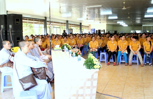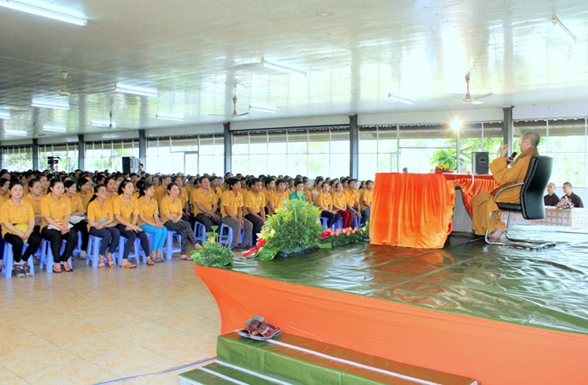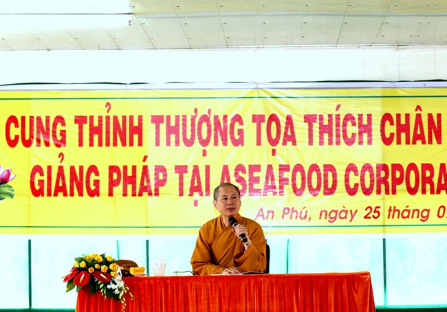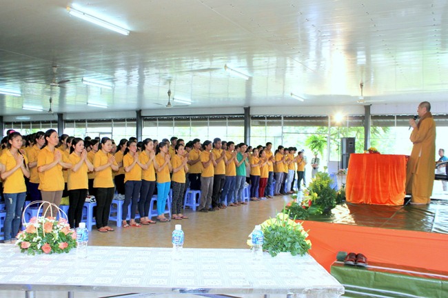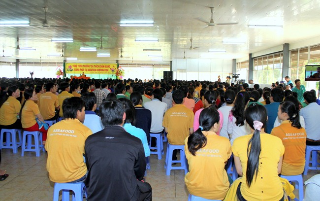 Do vậy, ngoài việc quan tâm đến khía cạnh đạo đức của công ty, giờ đây cô cũng muốn chia sẻ và tạo điều kiện cho tất cả công nhân của mình đồng có một cái nhìn và có một giá trị tinh thần thật sự an vui như cô vậy. Đó là lý do ngày hôm nay toàn thể Cán bộ nhân viên của công ty Vĩnh Phú long trọng cung đón TT Thích Chân Quang có buổi nói chuyện tại Hội trường này.