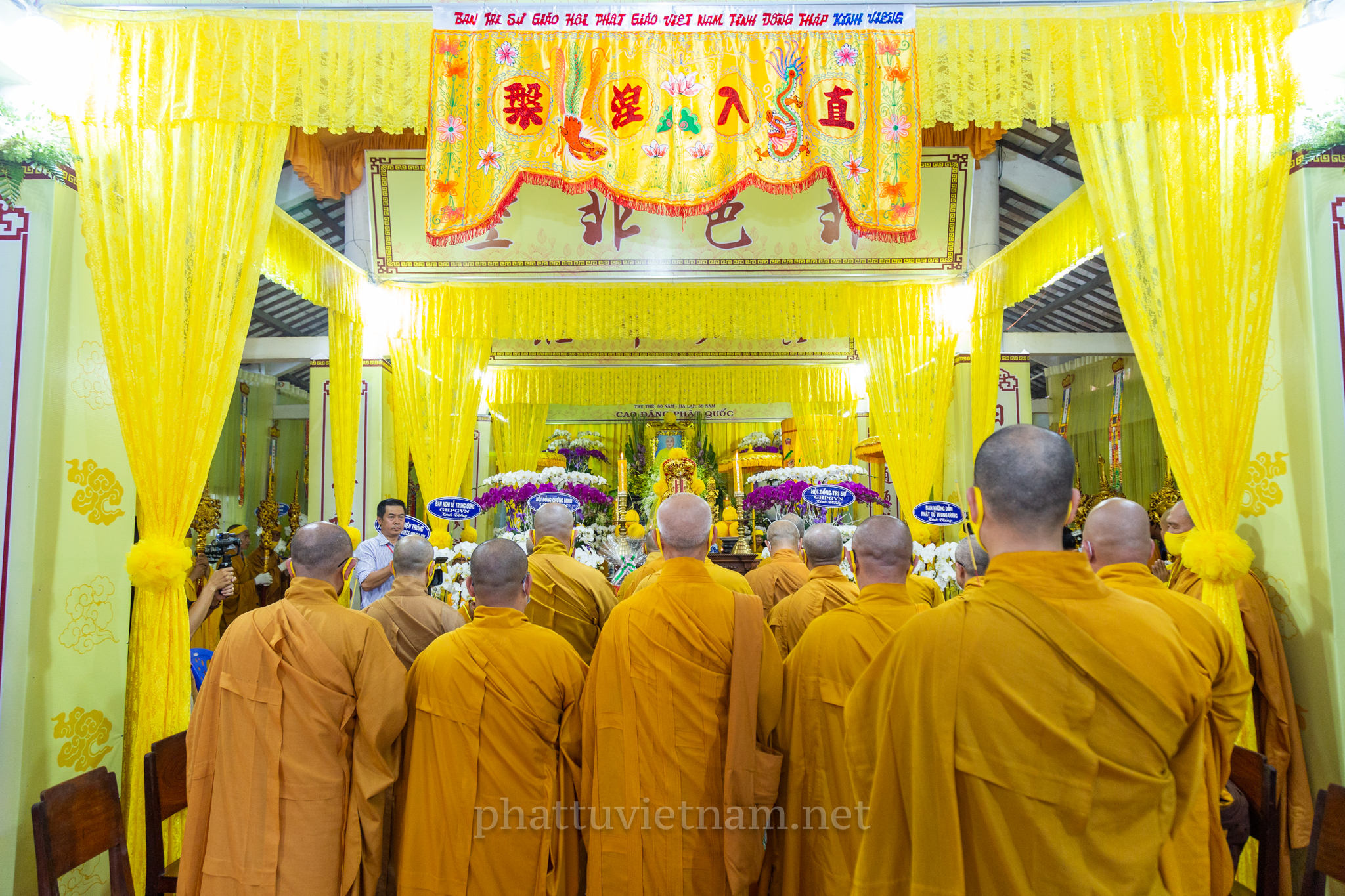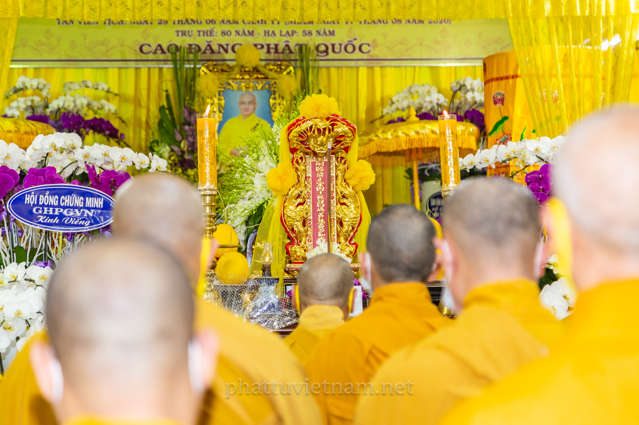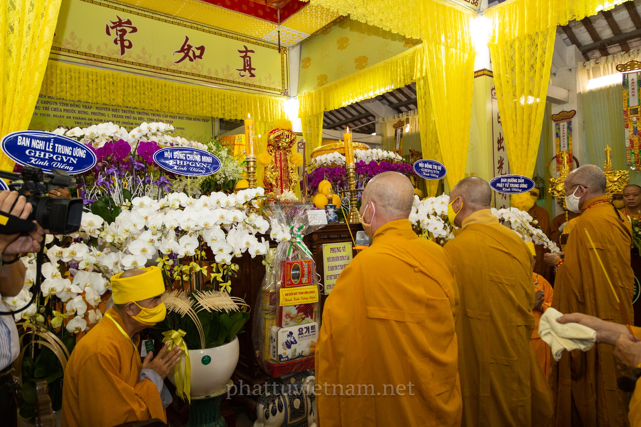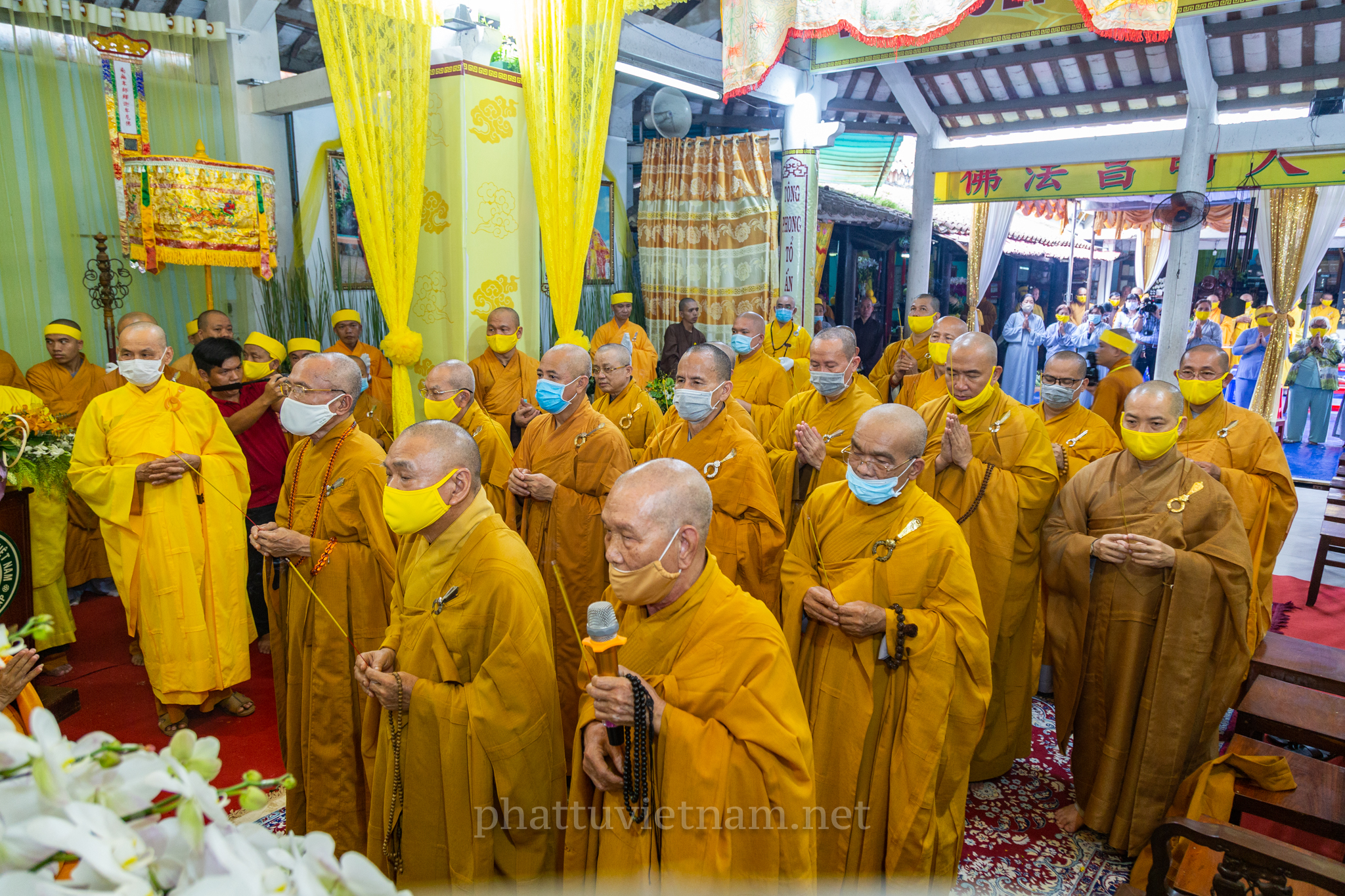 Chư tôn đức quang lâm Giác linh đường, tiến hành lễ dâng hương tưởng niệm và cầu nguyện.