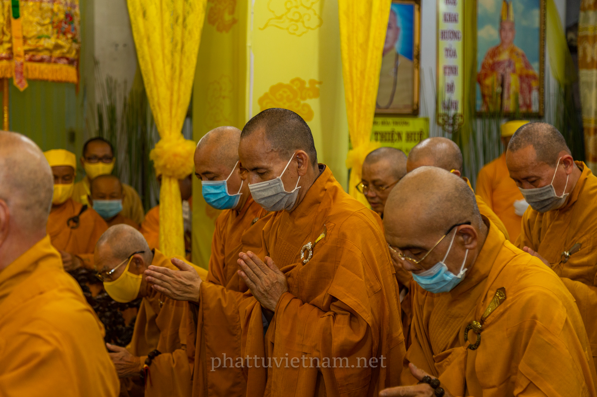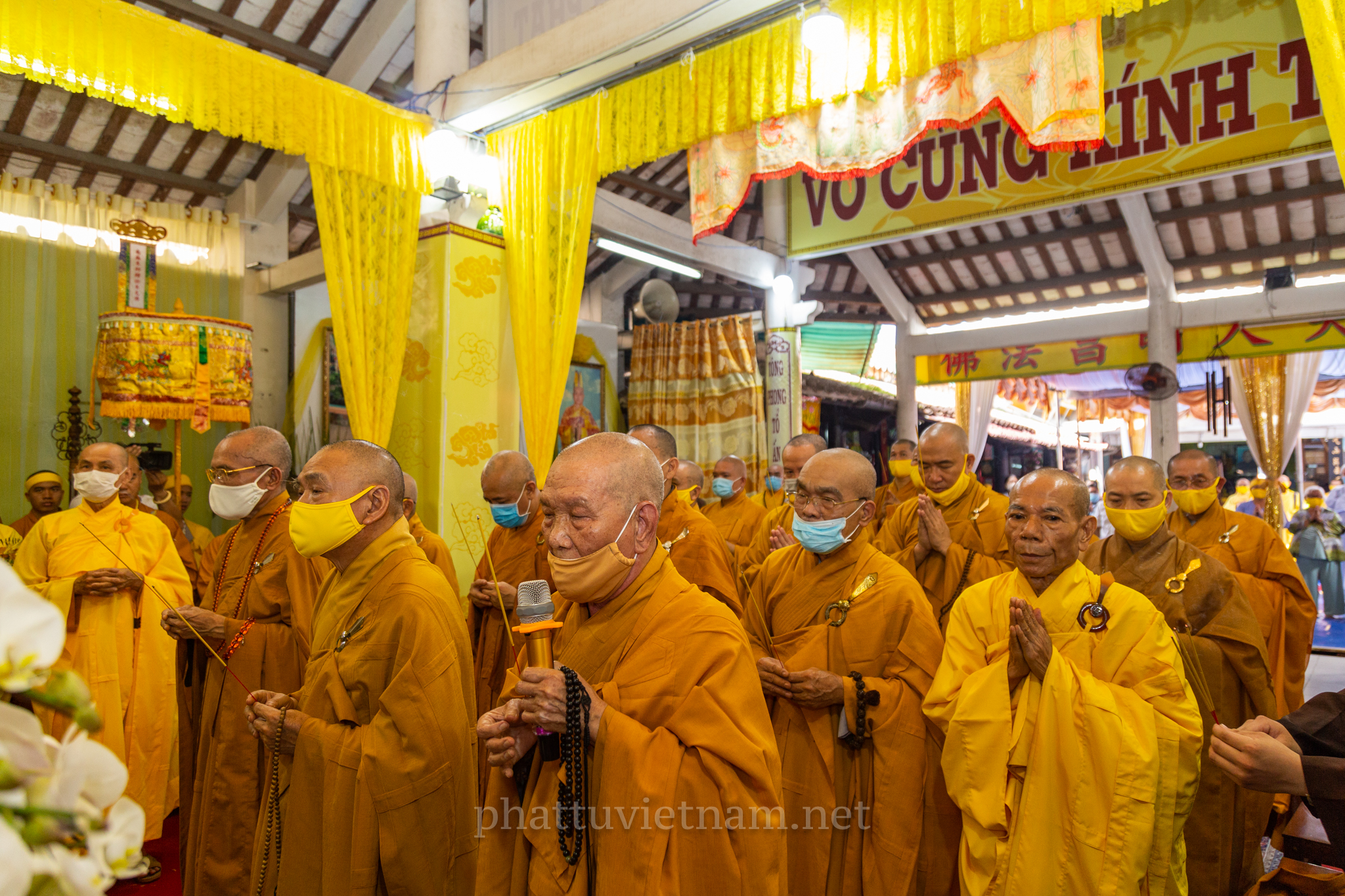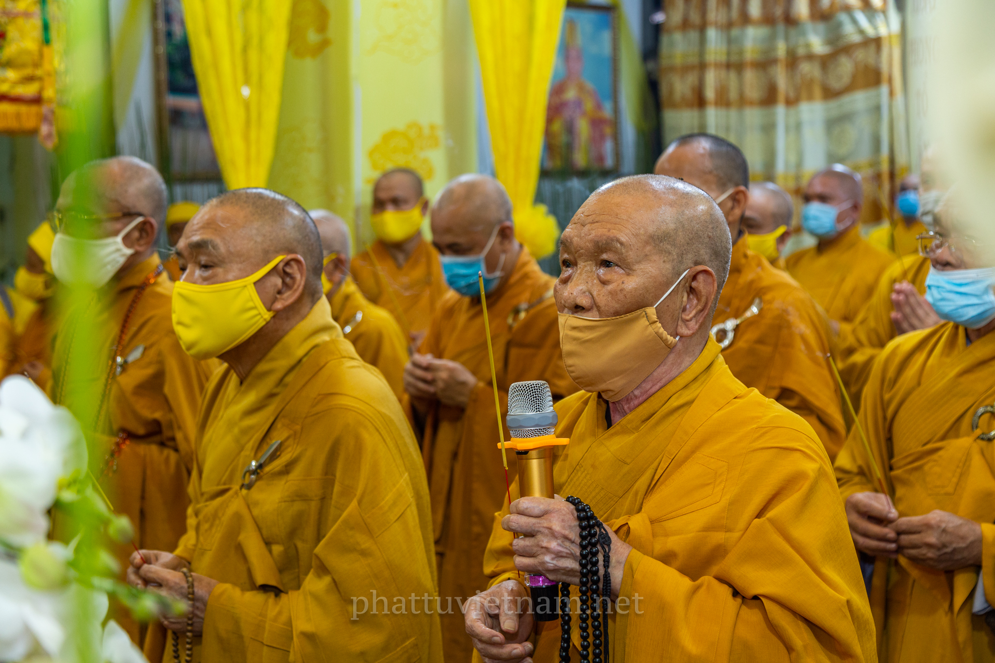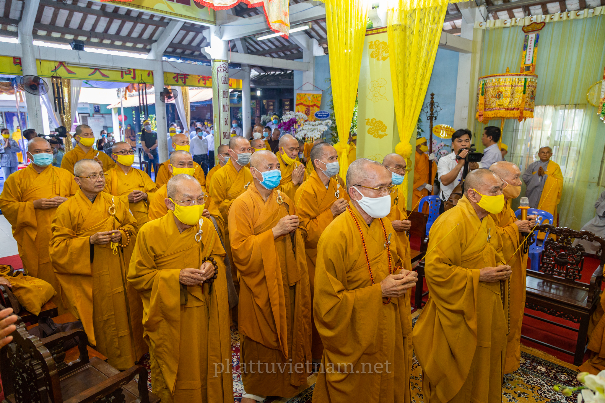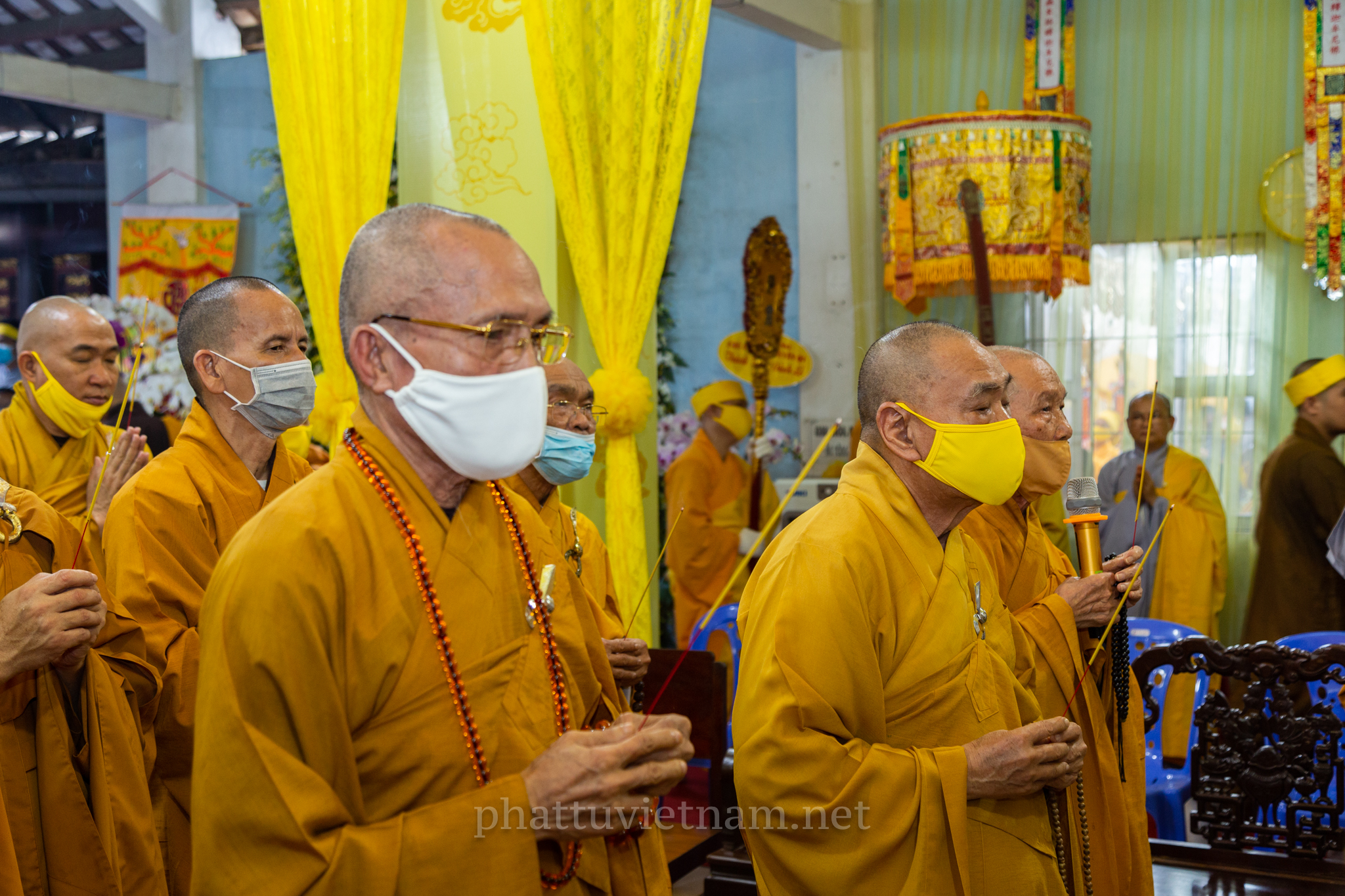 Chư tôn đức quang lâm Giác linh đường, tiến hành lễ dâng hương tưởng niệm và cầu nguyện.