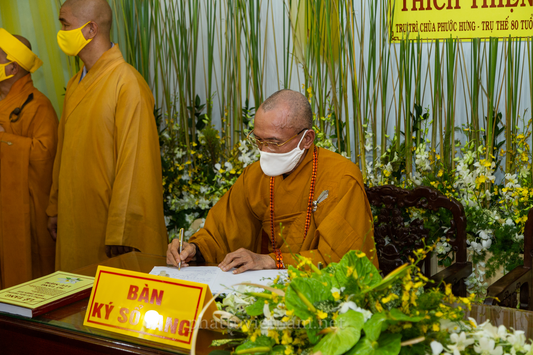 Tháp tùng cùng với Hòa thượng còn có sự hiện diện của TT.Thích Thiện Thống, Phó Chủ tịch HĐTS, Phó ban kiêm Chánh thư ký Ban Tăng sự TW GHPGV; HT.Thích Huệ Thông – Phó Tổng Thư ký HĐTS, Chánh Văn phòng II Trung ương GHPGVN; HT.Thích Huệ Trí – UV Thường trực HĐTS, Trưởng ban Pháp chế TƯ GHPGVN; HT.Thích Giác Liêm – UV Thường trực HĐTS, Phó Văn phòng II TƯ GHPGVN; HT.Thích Thiện Đức – Ủy viên Thường trực HĐTS, Phó ban kiêm Chánh Thư ký Ban Kiểm soát TƯ; HT.Thích Giác Liêm – Ủy viên Thường trực HĐTS, Phó Văn phòng II TƯ GHPGVN; TT.Thích Quang Thanh – UV HĐTS, Phó Chánh Văn Phòng II TƯ GHPGVN; TT.Thích Phước Nguyên – UVTT Hội đồng Trị sự, Phó Chánh Văn phòng II TƯGH; TT. Thích Phước Nghiêm – UV HĐTS, Phó Trưởng ban Thường trực Ban Hướng dẫn Phật tử TƯ…đồng tham dự.