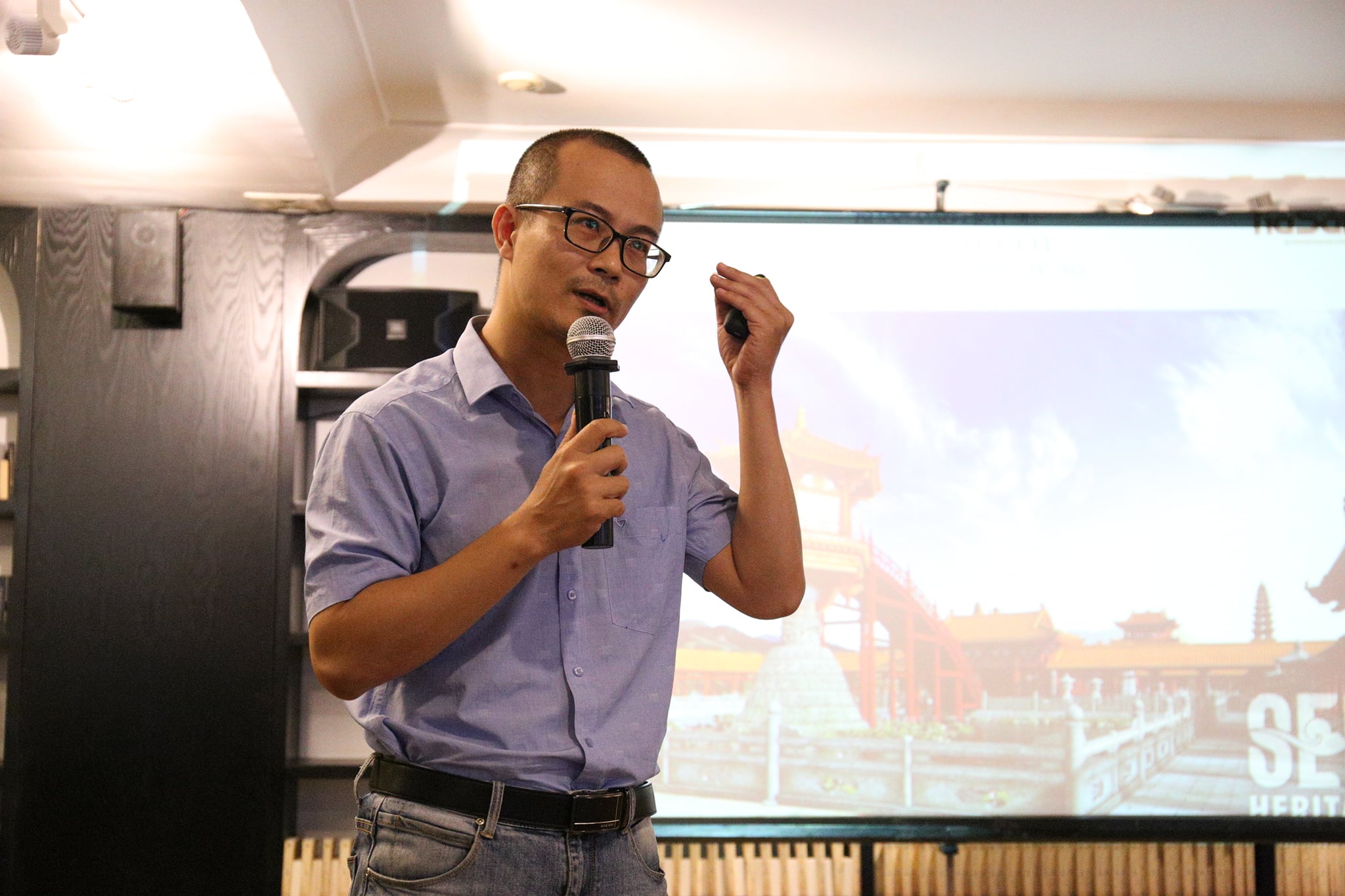 Sau đó, các kiến trúc sư và các bạn trẻ làm công nghệ thông tin trong nhóm SEN tiếp tục đưa toàn bộ giả thiết và các chi tiết này vào không gian số. Nhưng không dừng lại ở “số hóa giả thiết lịch sử” bằng mô hình 3D – phim hay tranh ảnh giúp khán giả nhìn sâu vào trong không gian mà nhóm dùng công nghệ thực tế ảo (VR) để giúp khán giả không chỉ ngồi xem mà còn trở thành một phần của không gian di sản, được đi, “chạm” tay vào những hiện vật lịch sử, giúp mang lại khái cảm lịch sử như ngồi trên chiếc máy thời gian để chiêm ngưỡng.