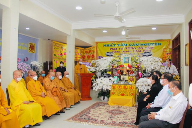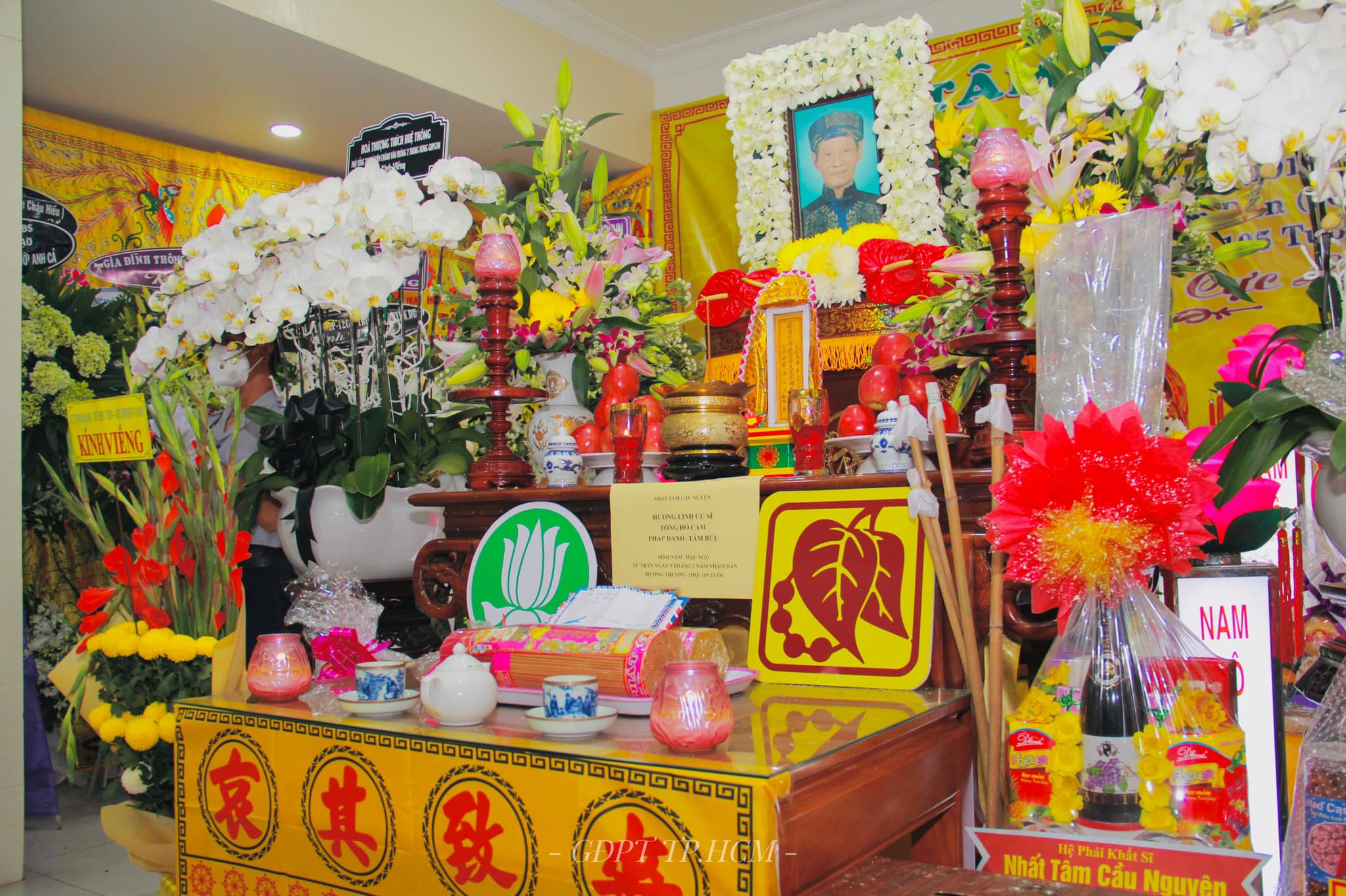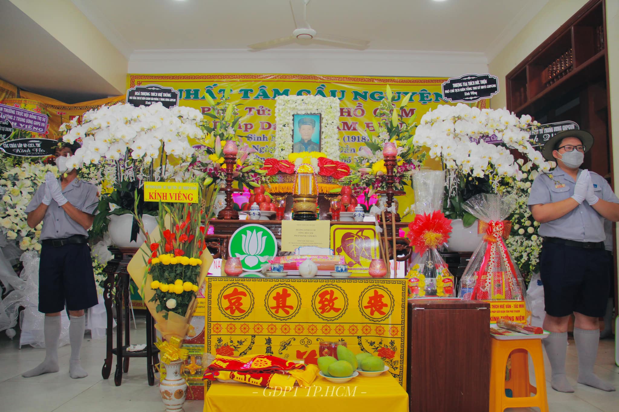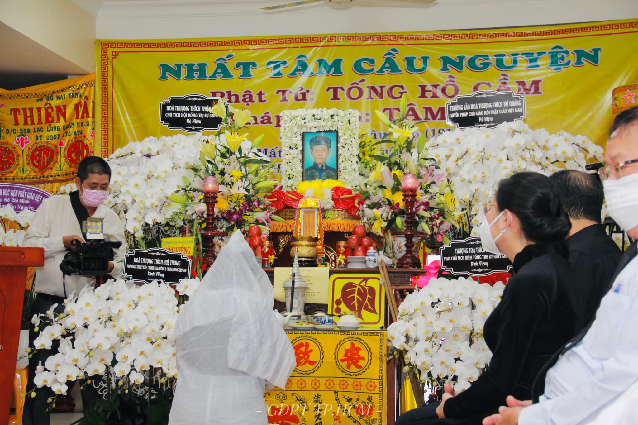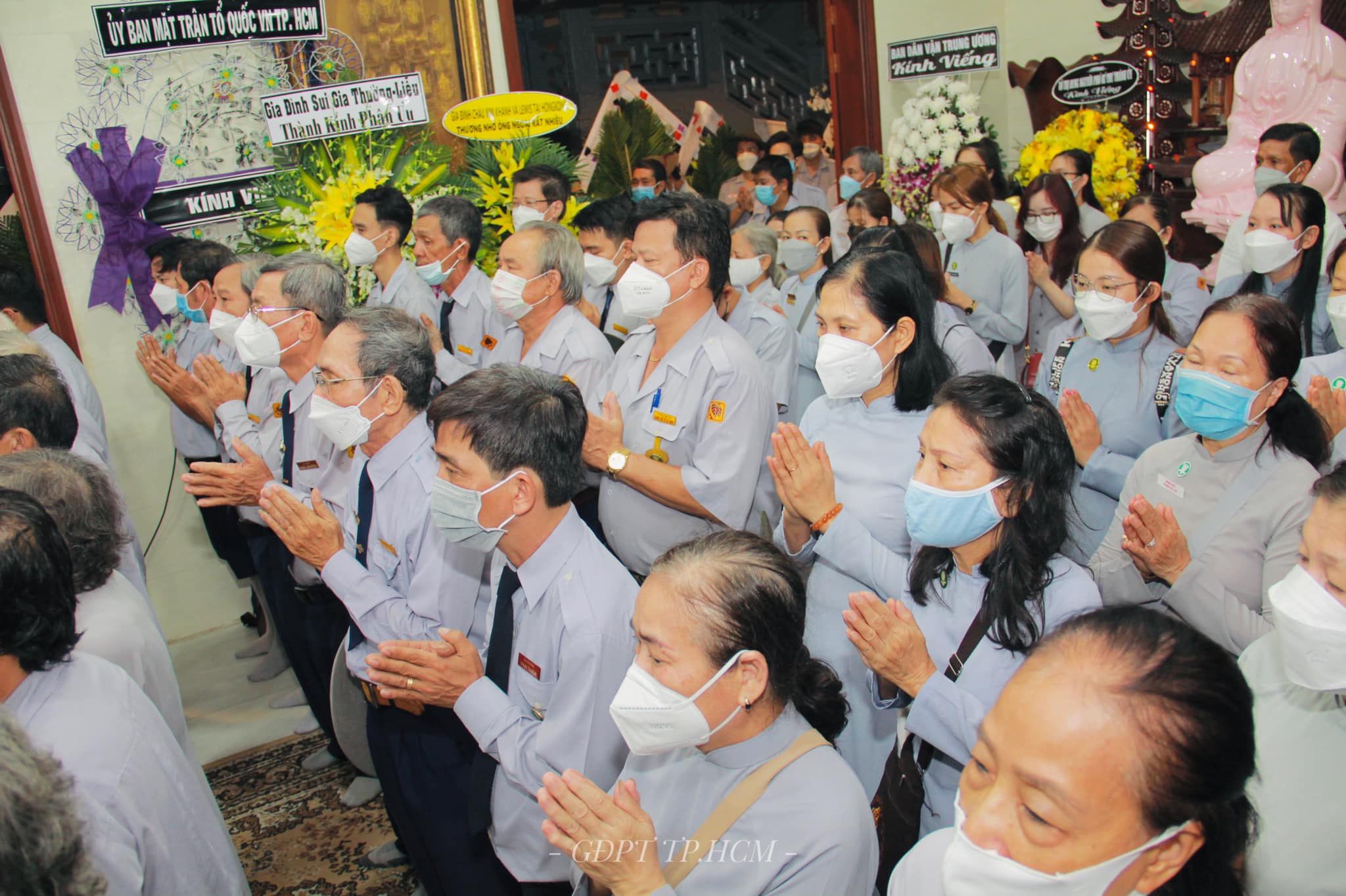 Đại diện các cơ quan TP.HCM có bà Tô Thị Bích Châu – Chủ tịch Ủy ban MTTQVN TP.HCM, đồng Trưởng ban Tổ chức Lễ tang, ông Nguyễn Thành Trung – Phó Chủ tịch Thường trực Ủy ban MTTQVN TP.HCM; bà Phan Kiều Thanh Hương – Phó Chủ tịch Ủy ban MTTQVN TP.HCM; ông Nguyễn Văn Thành – Trưởng ban Dân tộc – Tôn giáo Ban Dân vận Thành ủy TP.HCM; đại diện Quận ủy, HĐND, UBND, Ủy ban MTTQVN quận Tân Bình, phường 3 sở tại.