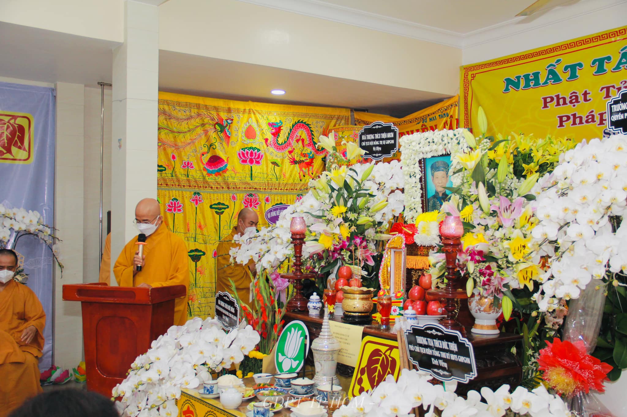 Nội dung lễ truy điệu, chương trình lễ truy điệu, di quan, thiết trí sắp xếp lễ đường được diễn ra trang nghiêm và nhịp nhàng với sự tham dự chứng minh của chư tôn đức giáo phẩm: Hòa thượng Thích Tịnh Hạnh, Hòa thượng Thích Như Tín – Thành viên Hội đồng Chứng minh GHPGVN, Chứng minh Ban Trị sự GHPGVN TP.HCM; Hòa thượng Thích Thiện Tánh – Phó Chủ tịch Hội đồng Trị sự, Phó Trưởng ban Trị sự GHPGVN TP.HCM; Thượng tọa Thích Thiện Quý – Phó Trưởng ban kiêm Chánh Thư ký Ban Trị sự GHPGVN TP.HCM, Thượng tọa Thích Quang Thạnh – Phó Viện trưởng kiêm Tổng Thư ký Học viện Phật giáo VN tại TP.CHM; Thượng tọa Thích Tâm Hải – Phó Tổng Biên tập báo Giác Ngộ; Thượng tọa Thích Đạt Đức – Trưởng ban Trị sự GHPGVN quận Tân Bình, trụ trì chùa Hải Quang, cùng chư tôn đức Ban Thường trực Ban Trị sự GHPGVN TP.HCM; Học viện Phật giáo VN tại TP.HCM, Ban Hướng dẫn Phật tử Trung ương, Phân ban Gia đình Phật tử Trung ương, TP.HCM; các ban chuyên môn Phật giáo TP.HCM, Ban Trị sự Phật giáo quận huyện, Tăng Ni các tự viện; cùng đông đảo Phật tử, huynh trưởng, đoàn sinh Gia đình Phật tử các nơi về tiễn biệt người anh lớn của Gia đình Phật tử VN.