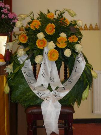 Sau khóa lễ cầu siêu, toàn thể đại chúng quay về bàn hương án, nơi đặt vòng hoa tưởng niệm dành cho cụ Phạm Ngọc Đảnh và toàn thể hương linh Nhật những giây phút chân thành nhất.