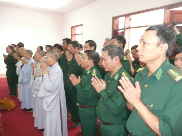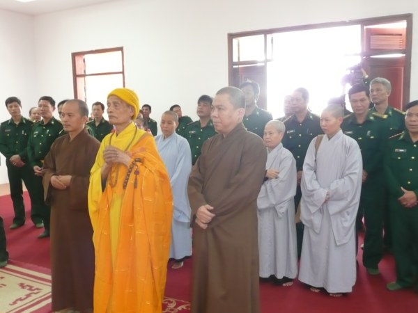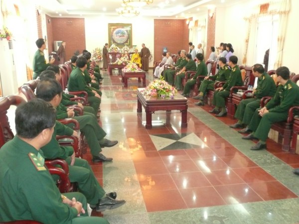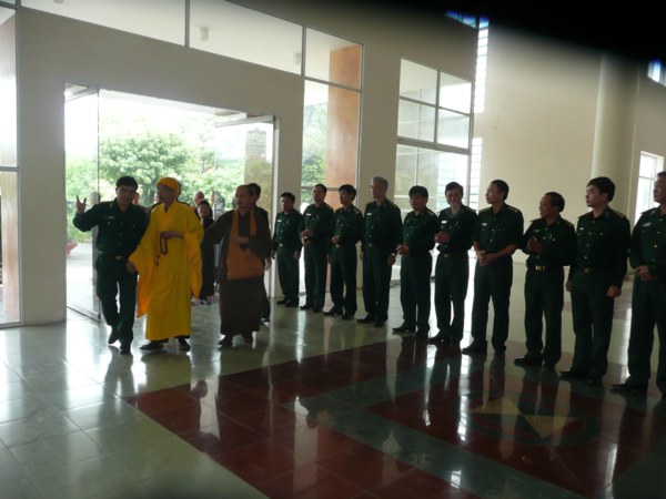Cung đón Đức Pháp chủ có đầy đủ cán bộ lãnh đạo chủ chốt của Học viện Biên phòng.