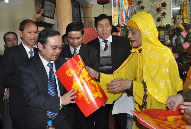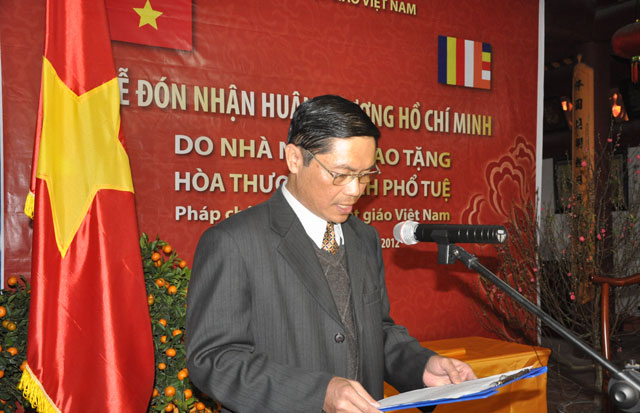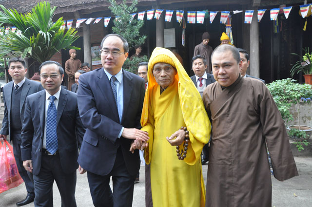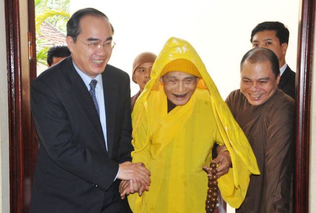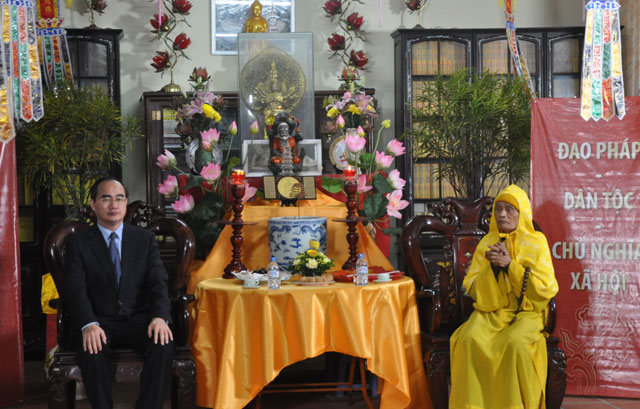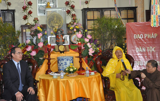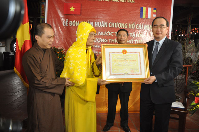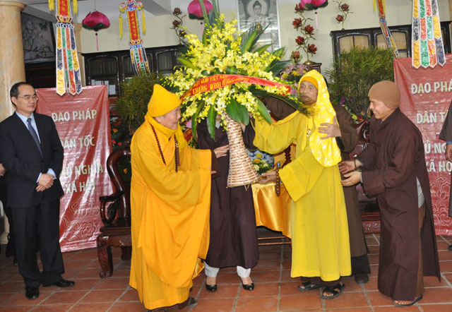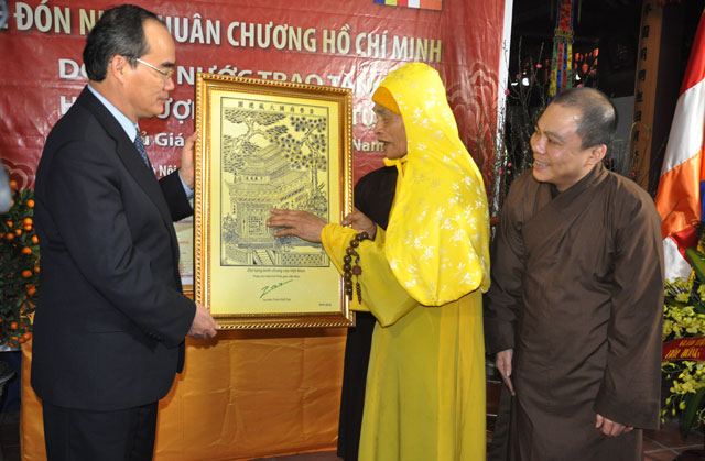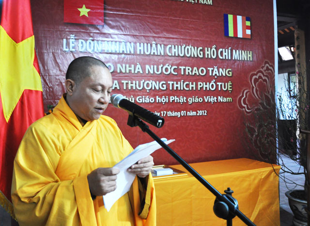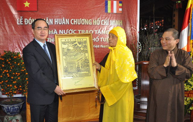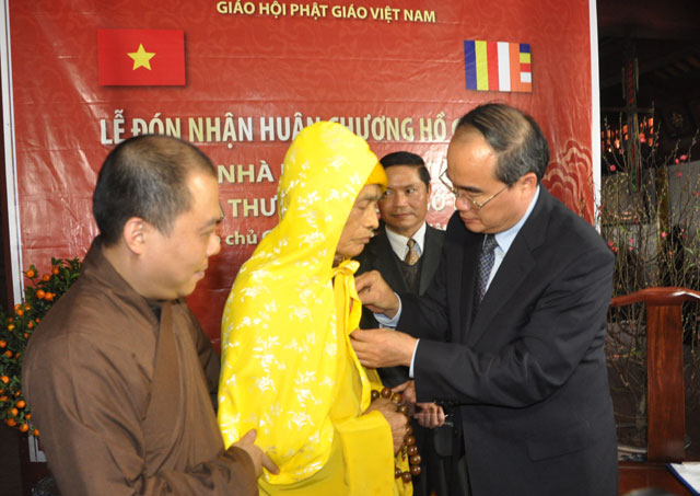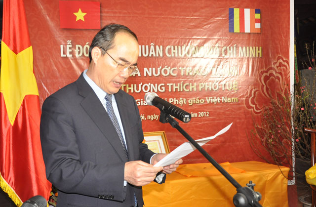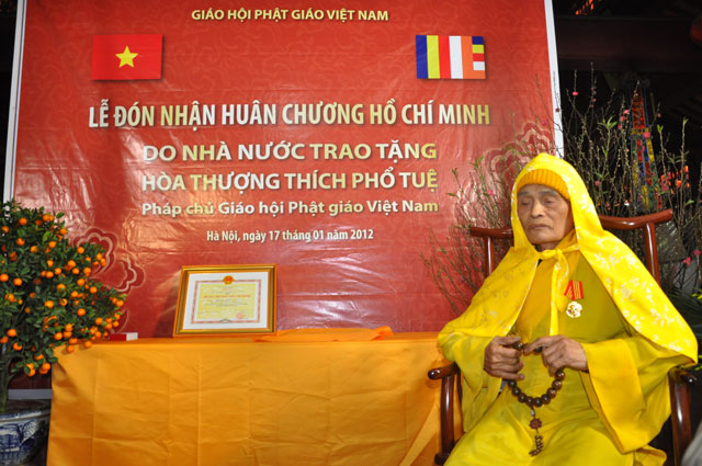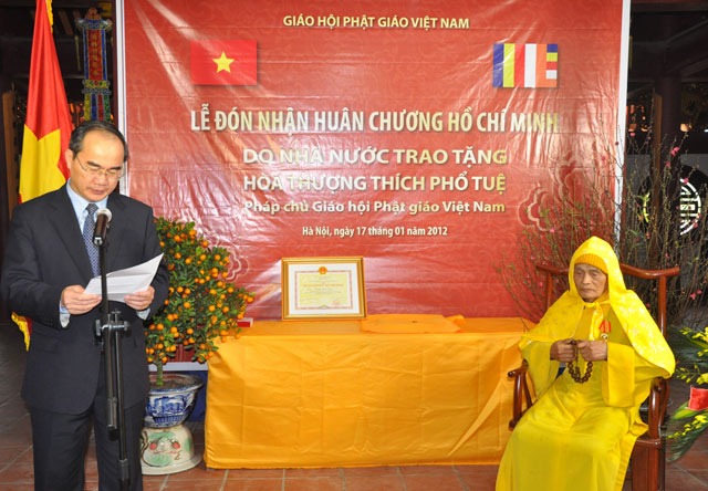 Tại buổi lễ Phó Thủ tướng Nguyễn Thiện Nhân thay mặt lãnh đạo Đảng và nhà nước trao tặng Huân chương Hồ Chí Minh và tặng hoa chúc mừng Đại lão Hòa thượng Thích Phổ Tuệ – Pháp chủ GHPGVN.