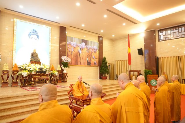 Đức Pháp chủ sách tấn chư Tăng Ni tham dự khóa học cần chuyên tâm tu học, nghiêm trì giới luật, phát huy tinh thần kỷ cương – trách nhiệm – đoàn kết, gắn việc tu tập nội tâm với thực hành Phật sự, tích cực phụng sự đạo pháp và dân tộc trong bối cảnh xã hội hiện nay.