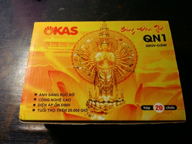 Cuối cùng, khi dùng bóng đèn, người ta xé bao bì có in hình Phật rồi vứt vào sọt rác.