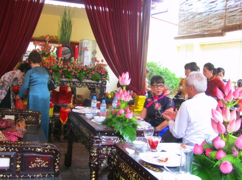 Món ăn ngon là một phần, điều đáng trân trọng hơn là phong cách bài trí trong buổi đính hôn. Hoa tươi độc tôn hai loại: Nhất hoa sen, nhị cát tường. Từ bàn thờ cửu huyền thất tổ, bàn tiếp khách cho đến cổng ra vào tươi thắm một màu hồng hoa sen trong tiết thu của đất Sài Gòn, dạo lên bao cung bậc về tâm hồn người Việt có trí tuệ đã biết khắc họa rất rõ phong cách văn hóa Việt của dân tộc mình.
