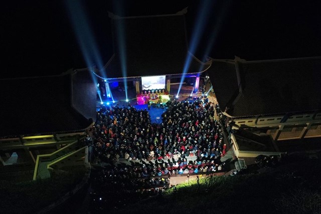 Ngay từ tờ mờ sáng sớm hôm sau , 10/12/2017 đoàn người đã lần lượt di chuyển từ chùa Hoa Yên lên tới Bảo tượng Phật hoàng Trần Nhân Tông để tổ chức khóa lễ sáng, ôn lại lịch sử và tưởng niệm Phật hoàng Trần Nhân Tông. Dưới sự hướng dẫn của Đại đức Thích Quảng Hiếu – Bản tự chùa Tân Hải, trưởng BTC buổi lễ, gần 1.500 Phật tử chùa Tân Hải đã được tham dự một khóa lễ sáng thật an lạc, hạnh phúc dưới chân tôn tượng Phật hoàng Trần Nhân Tông bằng đồng nguyên khối lớn nhất Châu Á, nặng 139 tấn. Tại đây, đoàn đã tổ chức tụng kinh cầu an, trì đại bi, thập chú, hồi hướng công đức lành đó, cầu nguyện cho thế giới hòa bình, chúng sinh an lạc và thưởng thức các chương trình văn nghệ đặc sắc tôn vinh Phật hoàng Trần Nhân Tông với trích đoạn về cuộc đời của Phật hoàng Trần Nhân Tông, các ca khúc ca ngợi công trạng của Ngài đối đối với non sông, Đất nước.