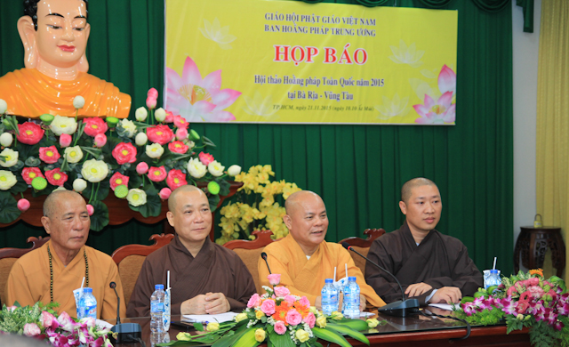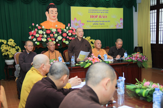 Buổi Họp báo dưới sự chủ trì của HT.Thích Bảo Nghiêm – Phó chủ tịch HĐTS – Trưởng Ban hoằng pháp TWGH kiêm trưởng ban tổ chức, HT.Thích Tấn Đạt – Phó ban TT BHP TWGH kiêm Phó ban tổ chức, HT.Thích Quảng Hiển – UV HĐTS – Trưởng Ban trị sự PG tỉnh BRVT và chư tôn đức thuộc các tiểu ban đồng tham dự.