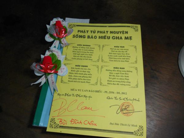 Thông qua đó, Đại đức Thích Lệ Minh đã hướng dẫn đại chúng ký hiệp ước “SỐNG BÁO HIẾU CHA MẸ”, phải thực hiện : Hiếu dưỡng, hiếu tâm, hiếu hạnh, và hiếu đạo đối với hai đấng sanh thành theo giáo pháp Phật dạy.