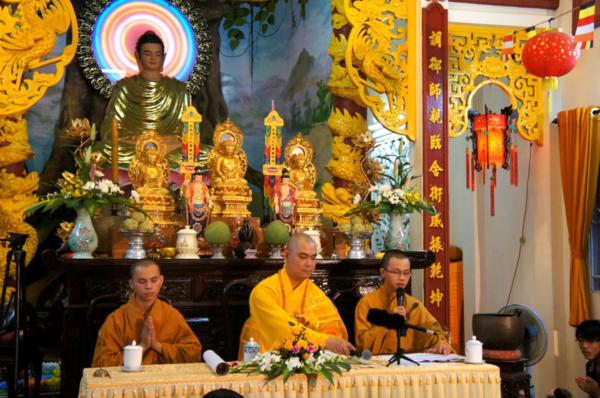 Buổi lễ đã diễn ra một cách trang nghiêm và thành kính. Mở đầu là bài pháp thoại do Đại Đức Thích Lệ Minh (Trưởng ban tổ chức – Trụ trì Chùa Thiện Mỹ) thuyết giảng với chủ đề “MẸ LÀ BIỂU HIỆN CỦA TÌNH THƯƠNG” đã làm cho khóe mắt của đại chúng rơi nhiều giọt lệ khi nghĩ về lối sống và sự báo đáo công ơn cha mẹ của bản mình còn nhiều khiếm khuyết. Kế tiếp là nghi thức cài hoa hồng mùa Vu Lan và thắp nến cầu nguyện.