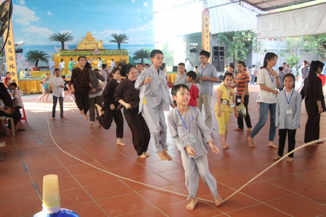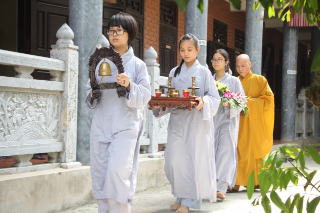 Ngay từ sáng sớm ngày 18/06, các bạn trẻ trong và ngoài tỉnh đã có mặt tại chùa làm thủ tục dự tu, gửi đồ và điện thoại, nhận áo tràng và nhận chúng. Khóa tu đã được cung nghinh Thượng tọa trụ trì Thích Thanh Định quang lâm và chia sẻ về mục đích, ý nghĩa khóa tu và sách tấn tinh thần tu học của các bạn nhỏ; giao lưu cùng thầy Thích Tâm Tiến, chư Tăng chùa Hoằng Pháp (Hóc Môn – TP.Hồ Chí Minh) về ý nghĩa, lợi ích của việc ăn chay. Sau các thời giảng pháp, các bạn trẻ được sống trong không khí sôi động trong các trò chơi, lắng lòng thanh tịnh nhớ về công ơn cha mẹ khi tụng kinh Vu Lan, quây quần sinh hoạt chúng, thảnh thơi khi ngồi tĩnh tọa.