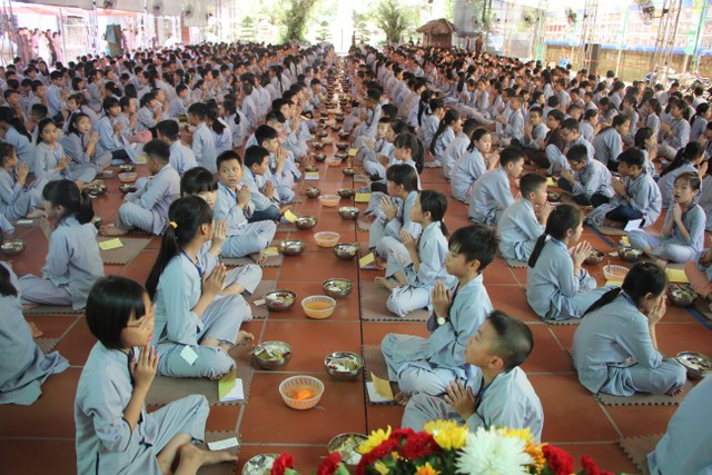 Sau mỗi thời khóa, quý Thầy phân công các chúng chấp tác, phục vụ đại chúng giúp các bạn nâng cao tinh thần trách nhiệm và biết gieo trồng phúc đức. Mỗi giờ ăn cơm, các em đều được hướng dẫn ngồi trang nghiêm, đồng thanh đọc bài kệ cảm ơn đến Tam Bảo, đàn – na, tín thí và các Phật tử đã vất vả công quả phục vụ các em tu tập.