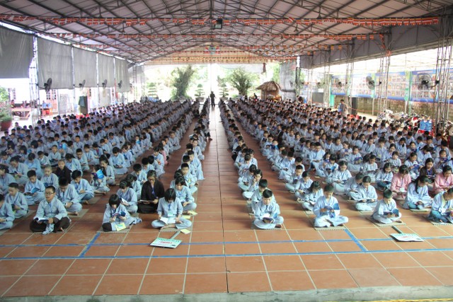 Ngay từ sáng sớm ngày 26/05, các bạn trẻ trong và ngoài tỉnh đã có mặt tại chùa làm thủ tục dự tu, gửi đồ và điện thoại, nhận áo tràng và nhận chúng. Với số lượng gần 800 thiện sinh, ban tổ chức đã chia thành 5 chúng: Sen Vàng, Sen Hồng, Sen Trắng, Sen Xanh và Sen Búp giúp các em làm quen với nhiều bạn mới, cùng nhau sinh hoạt nhóm.