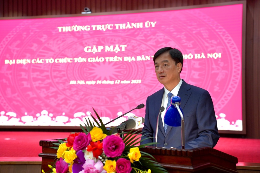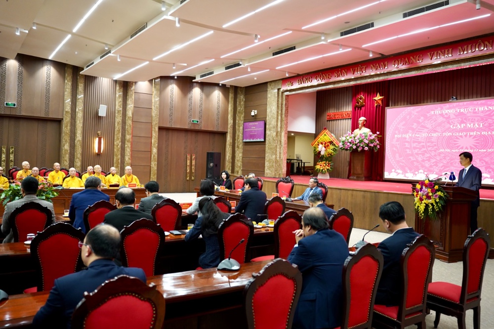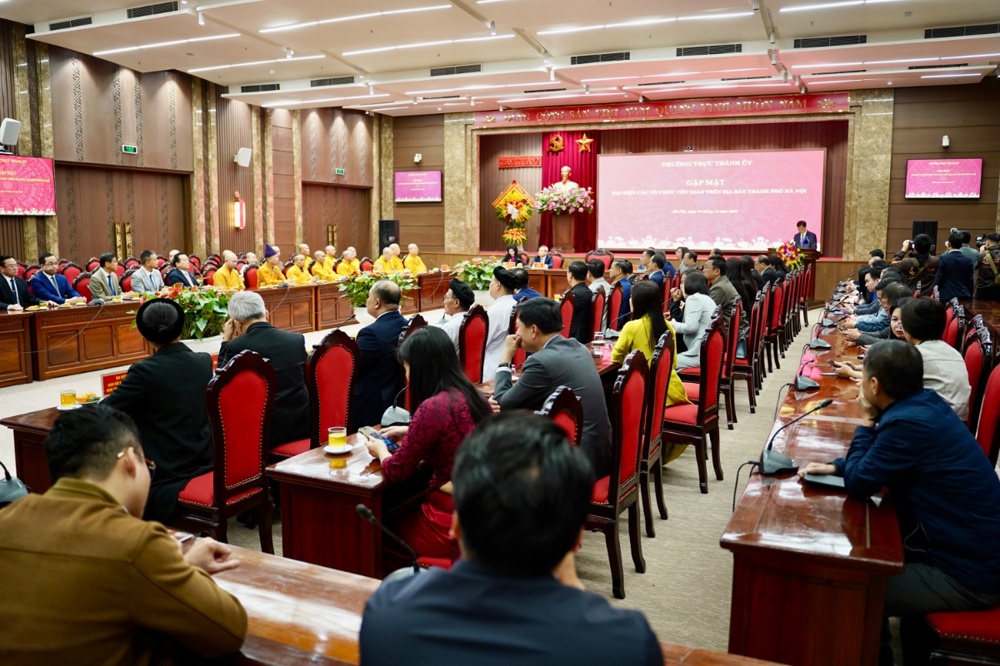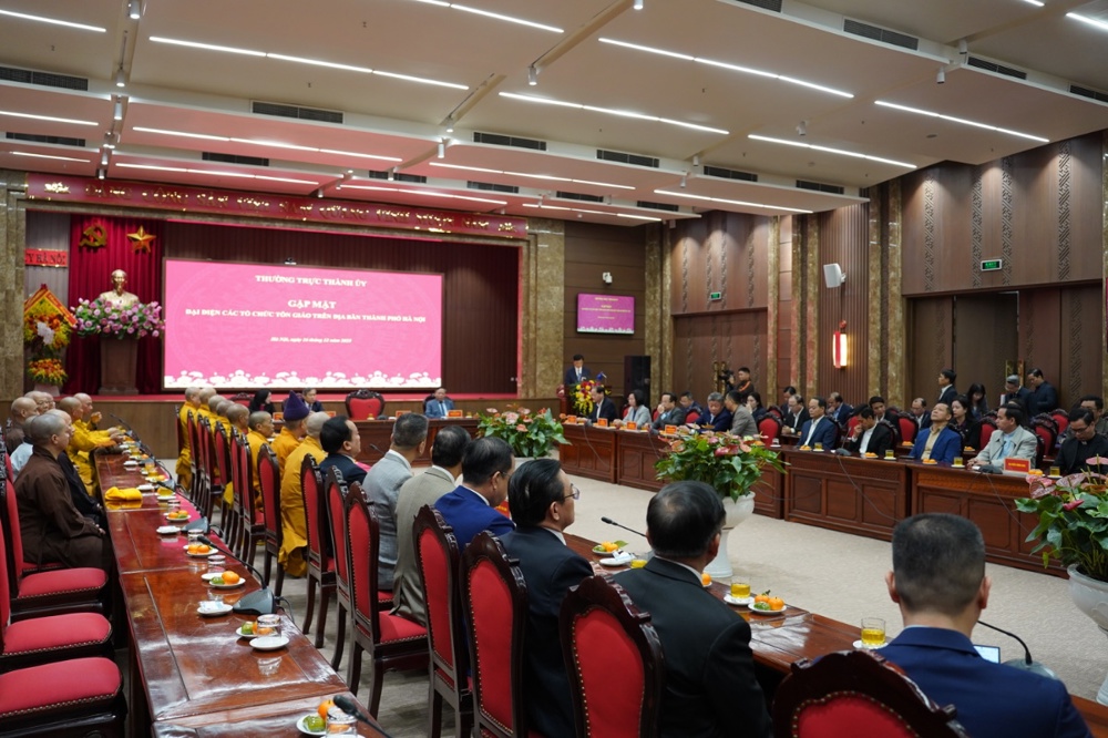 Chủ trì cuộc gặp mặt có: Ủy viên Bộ Chính trị, Bí thư Thành ủy Nguyễn Duy Ngọc; Ủy viên Trung ương Đảng, Phó Bí thư Thành ủy, Chủ tịch UBND thành phố Vũ Đại Thắng; Phó Bí thư Thường trực Thành ủy Nguyễn Văn Phong; Phó Bí thư Thành ủy, Chủ tịch HĐND thành phố Phùng Thị Hồng Hà.Cùng dự buổi gặp mặt có đại diện Ban Thường vụ Thành ủy, lãnh đạo HĐND, UBND thành phố và các sở, ban, ngành thành phố; cùng 44 đại diện các tổ chức tôn giáo trên địa bàn Thủ đô.