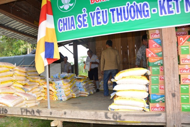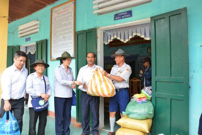 Sau phần nghi thức, đoàn đã phát 250 phần quà, mỗi phần trị giá 350.000 đồng gồm một chai nước mắm, một chai dầu ăn, 2 gói bột nêm, một thùng mì gói, 10 kg gạo và 100.000 đồng tiền mặt.