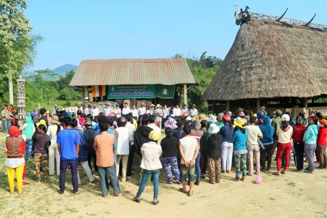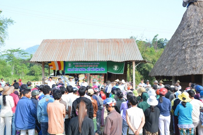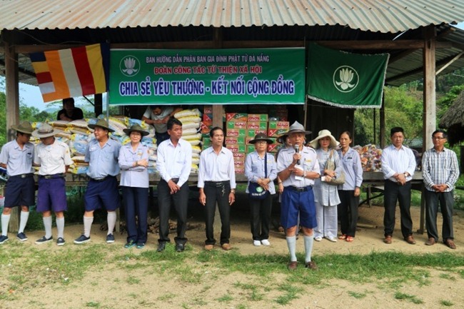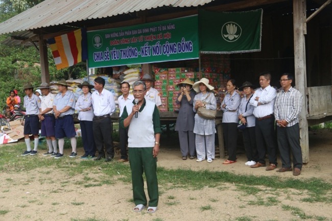 Ông Tơ Đên Sơn, phó chủ tịch xã đã phát biểu ý kiến cám ơn đoàn, cám ơn Ban Trị sự GHPGVN thành phố Đà Nẵng đã quan tâm đến đời sống người dân miền núi cao còn nhiều khó khăn.