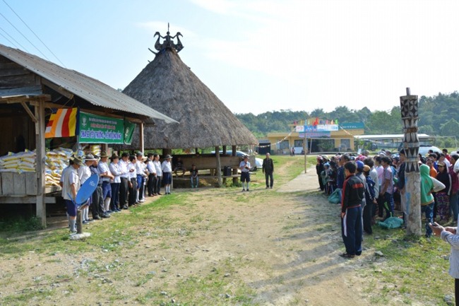 Sau phần niệm Phật cầu gia hộ, huynh trưởng cấp Dũng Thị Sơn Huỳnh Ngọc Lâm thay mặt đoàn đã phát biểu về chuyến công tác từ thiện, anh cám ơn các mạnh thường quân các nhà hảo tâm đã đóng góp tài vật, công sức, phương tiện cho chuyến đi này.