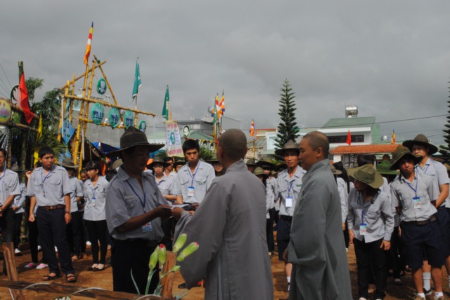 Phát biểu chứng minh khai mạc Hội Trại, TT. Thích Quảng Châu ân cần ban đạo từ, Thượng Tọa rất cảm kích trước sự giúp sức hết mình của Sư Cô Thích Nữ Minh Kiểm – Trụ trì Chùa Bửu Long đã tạo nhiều điều kiện về không gian vườn chùa và những cơ sở vật chất thuận lợi khác để Hội trại thành công, tạo sân chơi lành mạnh nhiều ý nghĩa cho thanh thiếu niên GĐPT Phố Núi dịp hè này.