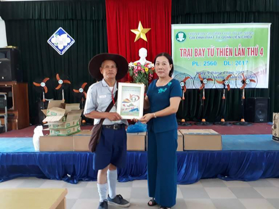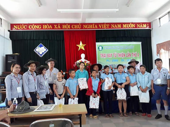 Tại đây ban điều hành trại và các đơn vị gia đình đã trao tặng 11 cái quạt cây cho nhà trường nhằm để phục vụ cho các em học sinh khuyết tật trong mùa hè nóng, trao tặng một suất học bổng trị giá 1.500.000đ cho một học sinh có hoàn cảnh khó khăn 25 phần quà gồm bánh sữa cho 25 em nội trú tại trường.