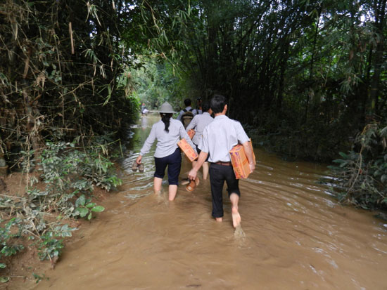 Do nước ngập sâu, lại không có phương tiện đi lại cho nên còn nhiều gia đình các anh chị Huynh trưởng Đoàn sinh trong vùng rốn lũ đoàn không thể đến thăm tận nơi được