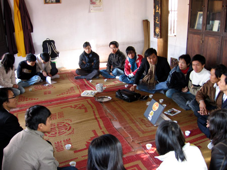 Mở đầu buổi gặp gỡ, các thành viên mới và cũ đã giới thiệu bản thân, chia sẻ ngắn về con đường đến với đạo Phật, kinh nghiệm tu tập. Việc đến với đạo Phật hiện nay của thanh niên vẫn còn không ít nghịch duyên, trong đó đặc biệt là những trở ngại từ phía gia đình, bạn bè. Trong mắt không ít người, Phật giáo có vẻ gì đó yếm thế, chỉ dành cho những người gặp trắc trở trong cuộc sống. Ngoài ra, một số người vẫn nghĩ nhà chùa nói riêng, Phật giáo nói chung là nơi làm việc cúng bái, cầu khấn, với việc hiếu, chứ không dành cho cuộc sống hiện đại.